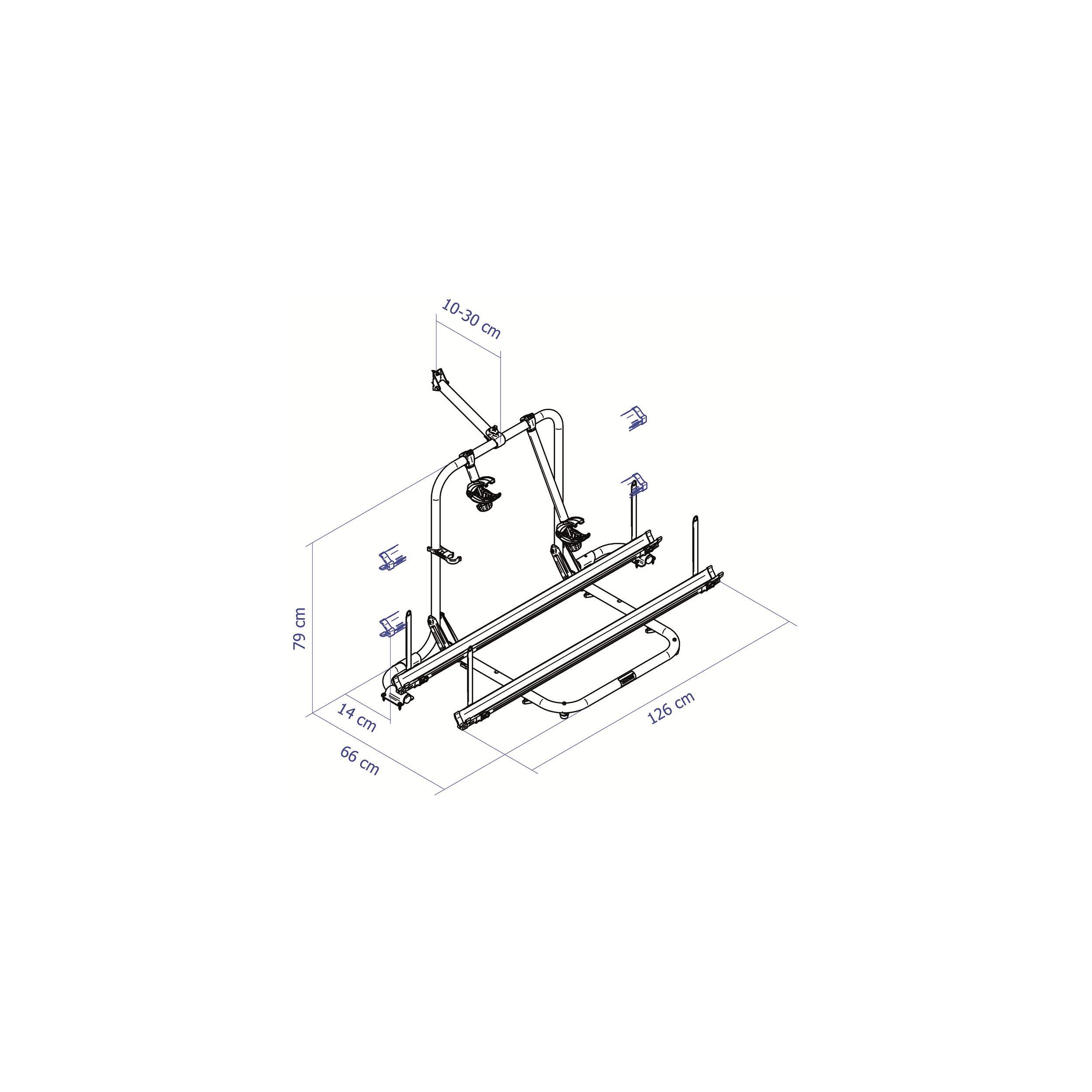 - Transformable en porte 3 ou 4 vélos grâce à des rails d’extension en option