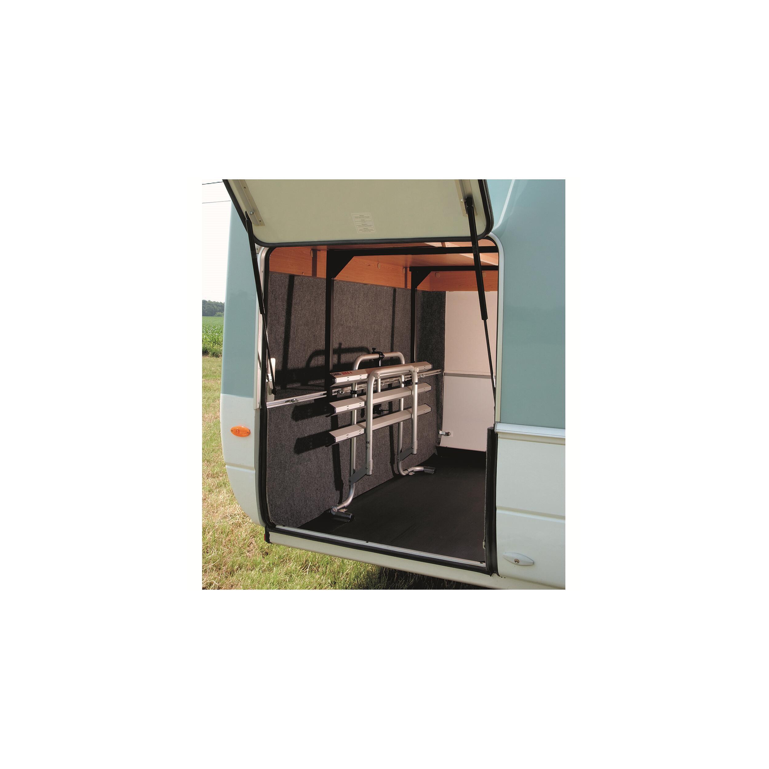 Le Porte-vélos Sport G2 Garage s’installe dans la soute / garage de votre véhicule de loisirs pour transporter vos vélos à l’intérieur. Vous disposez d’une base prévue pour 2 vélos, avec des rails coulissants qui permettent de positionner les vélos de manière pratique. Selon vos besoins, il peut être équipé de rails d’extension en option pour passer à 3 ou 4 vélos maximum, comme indiqué dans la fiche (vélos transportés standard max. 2 à 4).