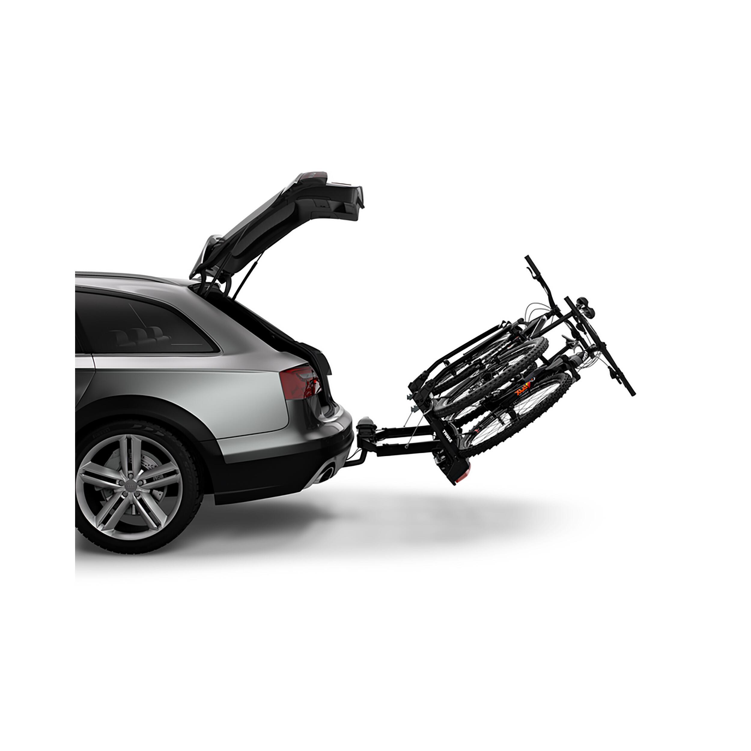 Le porte-vélos Velospace XT de Thule se fixe sur boule d'attelage et transporte vos vélos en toute sécurité. Entièrement pliable et compatible avec tous types de vélos, il se range facilement dans votre coffre.