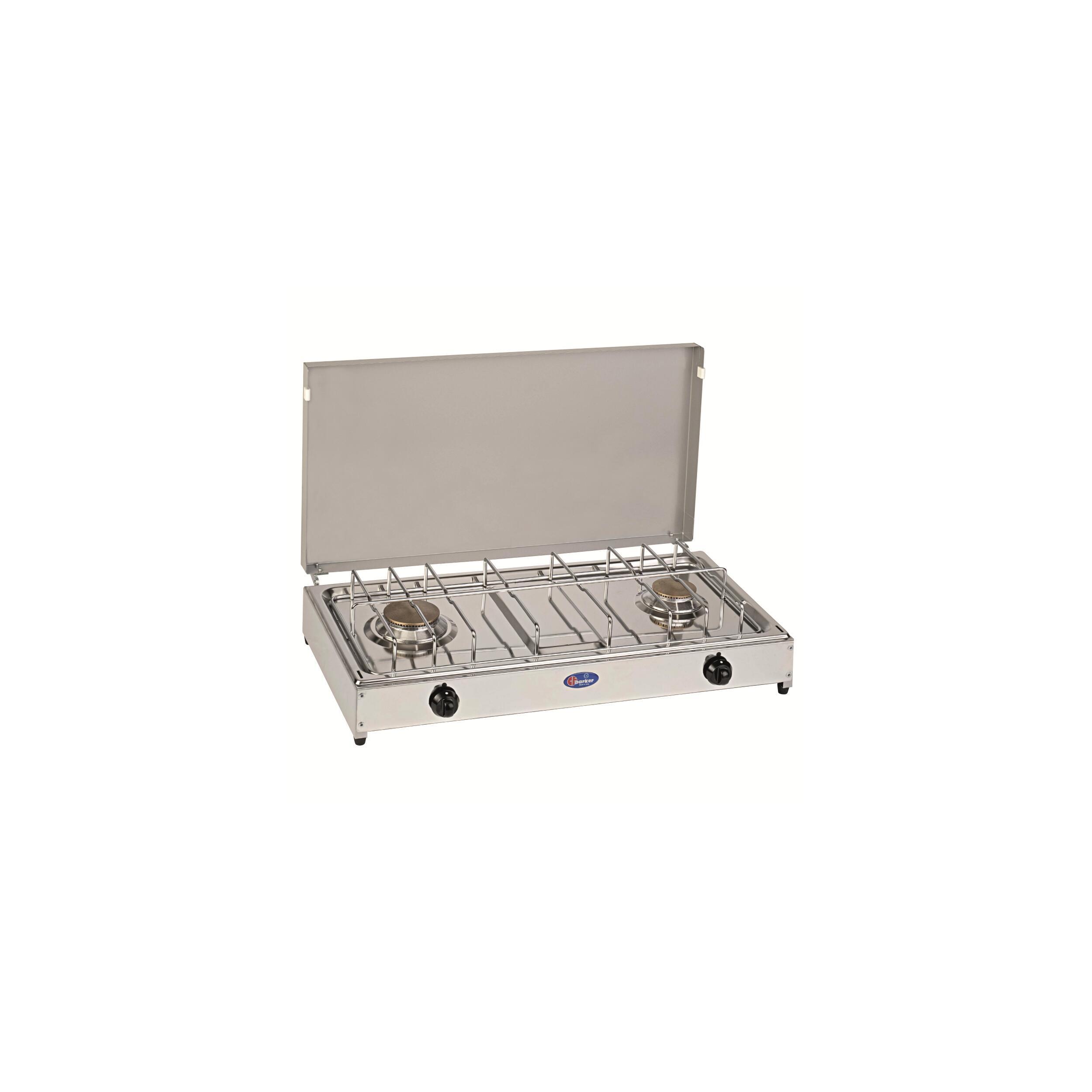 Le réchaud à gaz en inox de la marque Parker est idéal pour cuisiner des bons repas en voyage ou au camping.