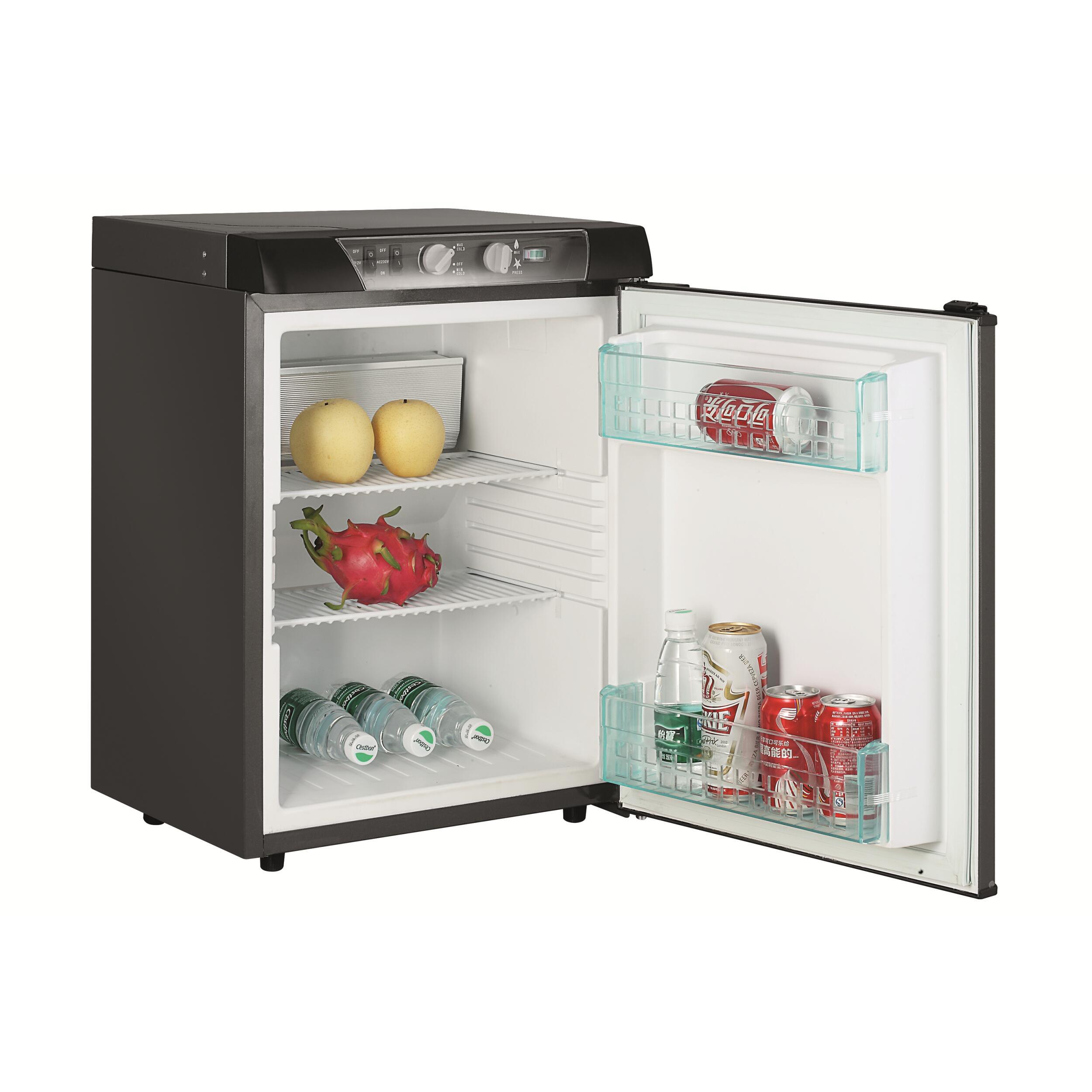 Réfrigérateur Trimixte à absorption à poser. Ce réfrigérateur à absorption à un fonctionnement Trimixte à poser c'est-à-dire qu'il peut fonctionner soit en 220 volts quand le véhicule est branché sur réseau EDF, en 12 volts ou au gaz. Il possède un thermostat, un indicateur de présence de flamme, un système de verrouillage des portes (indispensable quand le véhicule est mouvement). Inclus : câbles de raccordement avec fiche allume-cigare. Modèle à poser, non-recommandé pour l'encastrement. Réfrigérateur à poser : Idéal pour vos extérieurs, le camping, pour un pool house, sous votre auvent ou dans un mobil home. Orientez vers un réfrigérateur encastrable pour votre véhicule aménagé et dans le doute contactez un de nos conseiller.