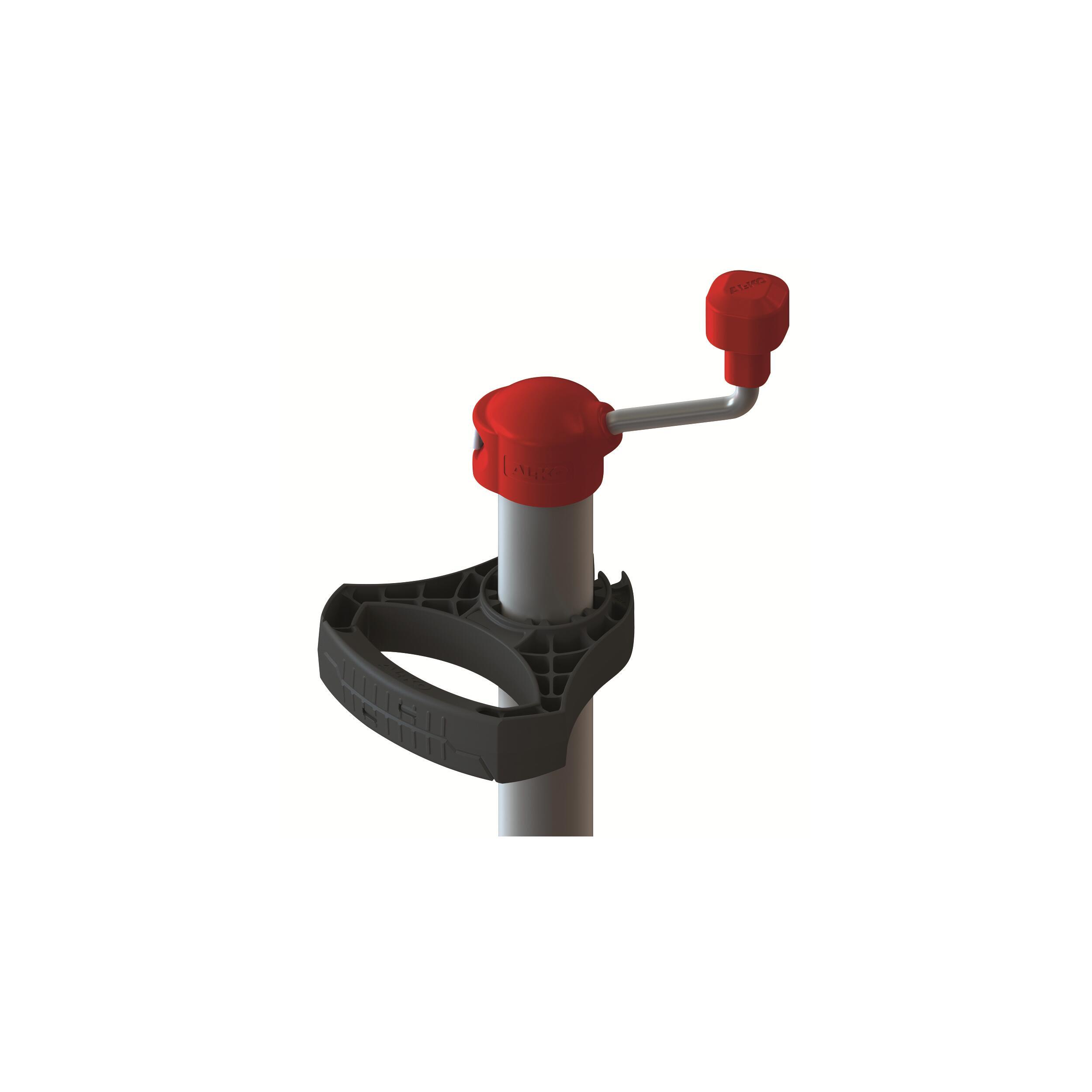 La poignée de manœuvre noire est destinée à une roue jockey. Elle vous permet de faciliter le déplacement de la caravane ou de la remorque.