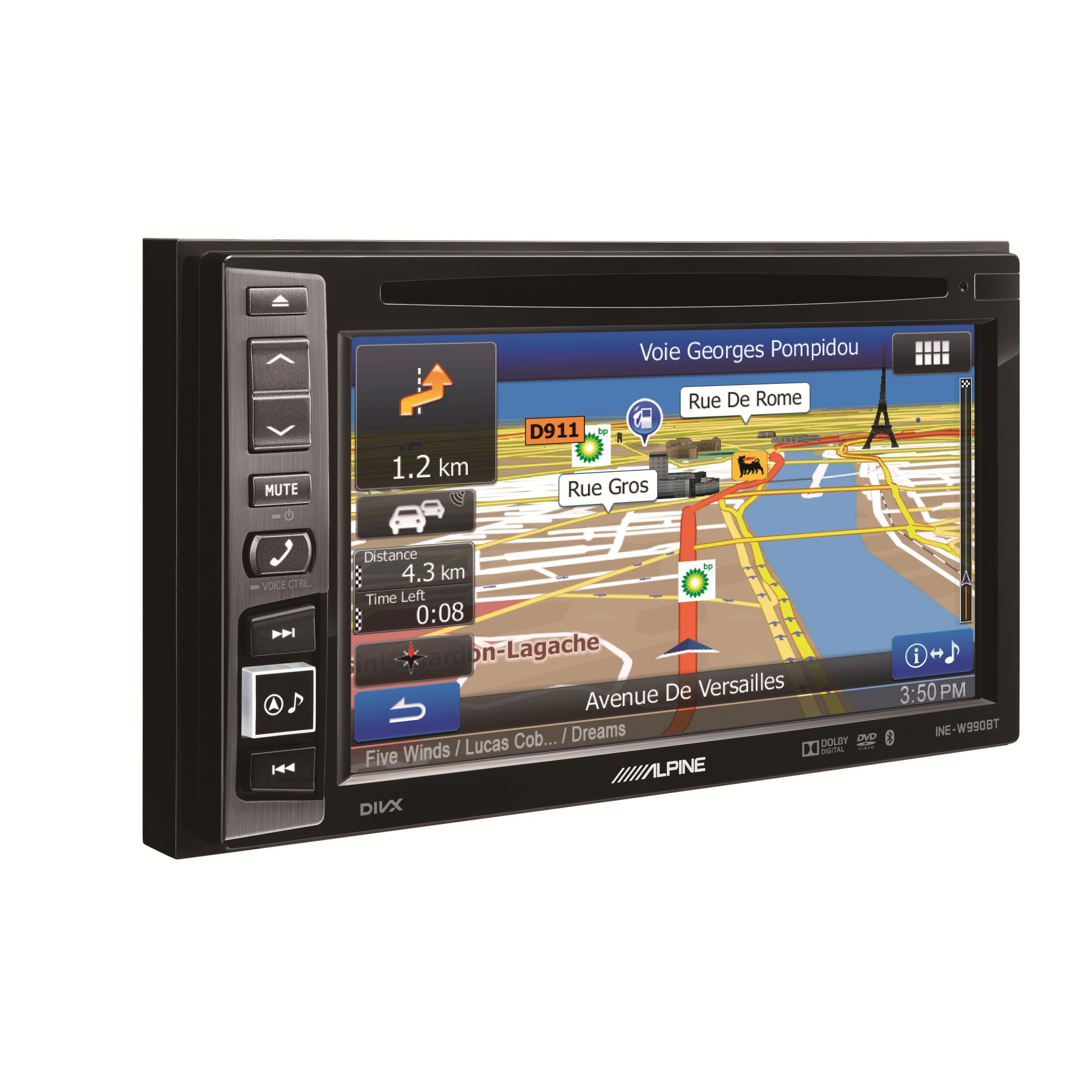 Station multimédia GPS INE-W990BT. Cette station multimédia et GPS à spécialement été conçu pour les véhicules de loisirs. 'INE-W990BT combine le meilleur de la technologie Alpine et offre ainsi un réel plaisir d'utilisation assurant efficaticé et sécurité.Ses capacités ont été améliorées par rapport aux modèles précédent grâce à un processeur plus puissant permmettant ainsi un défilement de la carte plus fluide et une vitesse de calcul des itinéraires accrue. Vous disposez d'une large gamme de réglages audio, y compris via la connectivité avec l'application Alpine TuneIt qui vous assure également le lien avec votre compte Facebook. L'excellente qualité audio complète sa large connectivité incluant un module Bluetooth intégré avec commande vocale et sa possibilité de recevoir en option des récepteurs TV numérique ou Radio numérique (DVB-T /DAB/DAB+). Peut importe quel média vous souhaitez écouter ou voir, l'INE-W990BT est prêt. Profitez de la musique ou vidéos de votre iPod/iPhone, clé USB ou DVD (DVD-Video / CD / DivX / MP3 / WMA / AAC)
