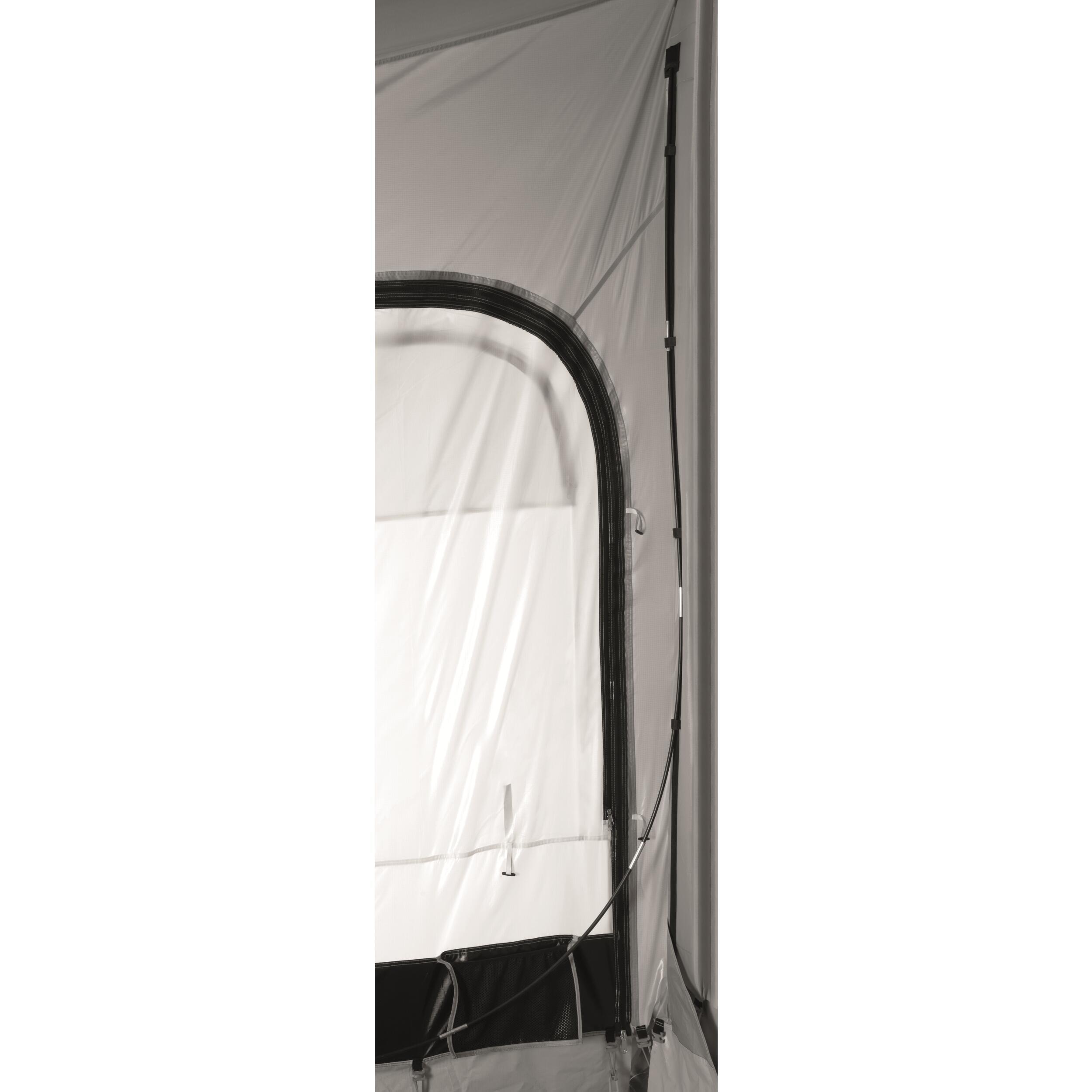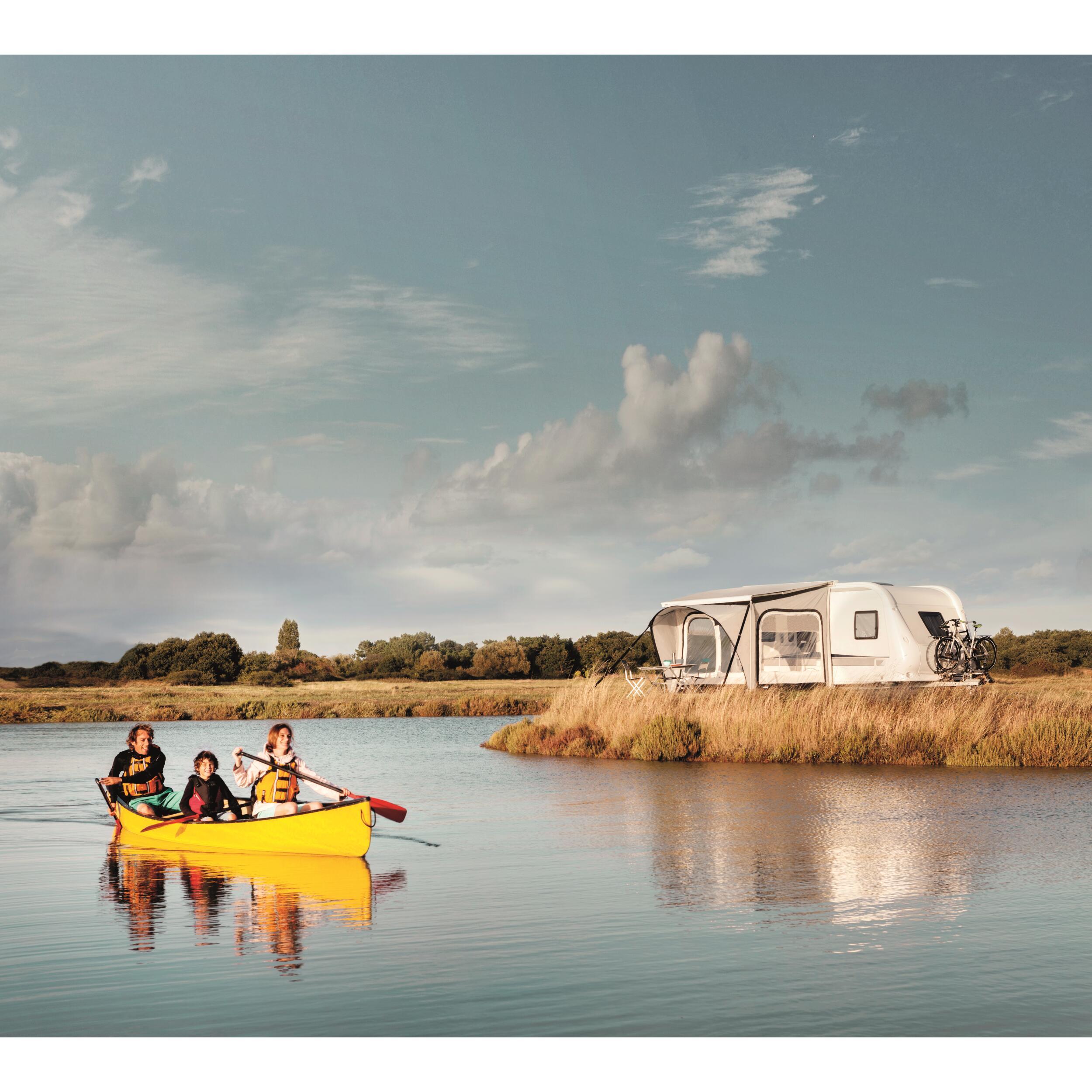 Le montage de l'auvent est très simple et rapide. En seulement 20 minutes, vous avez votre pièce extérieure ! L'auvent est conçu d'une seule pièce et ne nécessite pas de profilés. De plus, il n'y a pas d'armature. Il se glisse facilement dans le rail de la caravane ou dans le rail situé sous le boîtier du store (se fixe sans difficultés sur le rail avant du store). Les accessoires de fixation sont fournis : piquets et tendeurs.