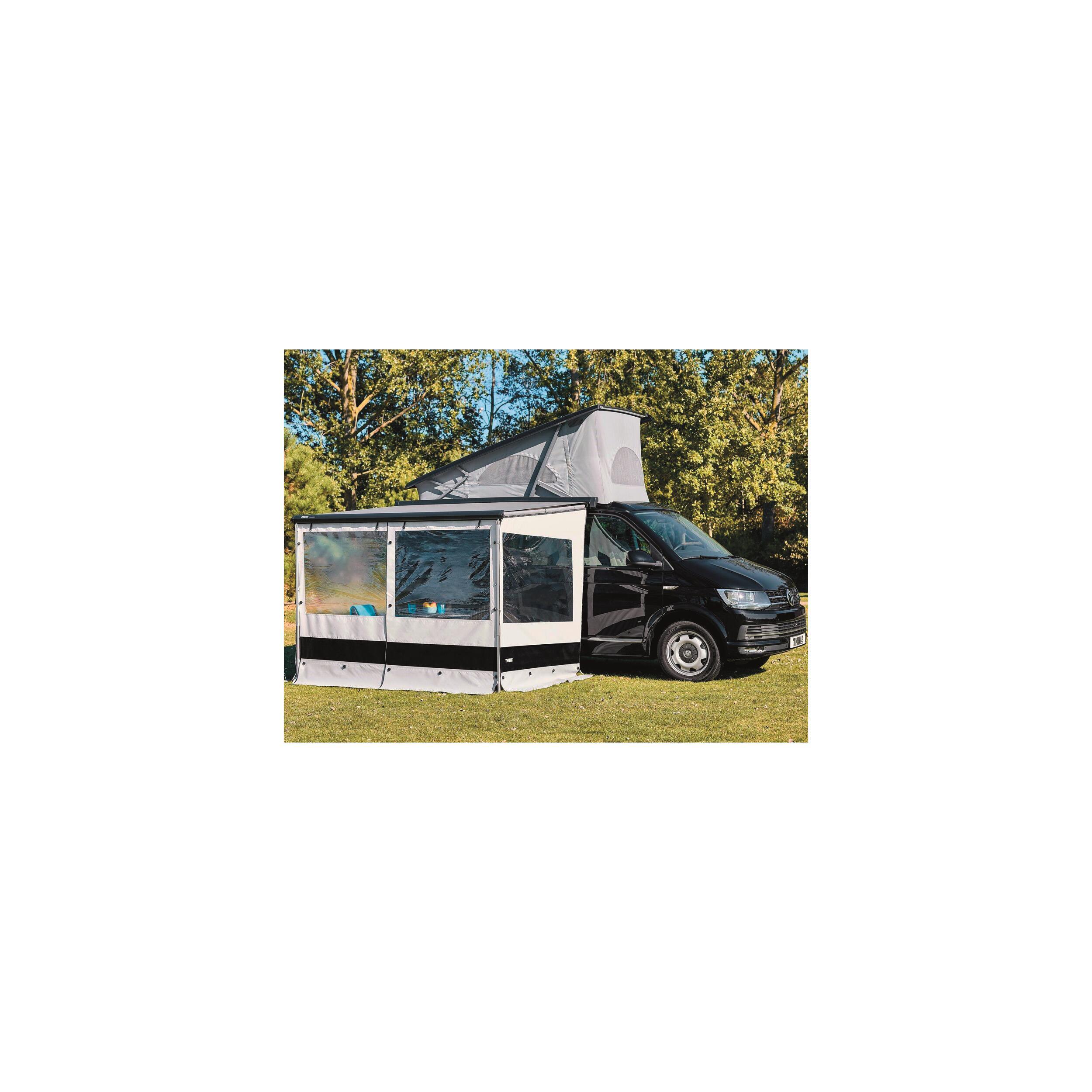 Les côtés et façades en PVC, panneaux Thule Rain Blocker, vous permettent d'être protégé de la pluie et du vent sous votre store, tout en conservant la lumière grâce aux fenêtres (traitées anti-UV). De plus, équipé d'une bavette de sol, les courants d'air sont limités !