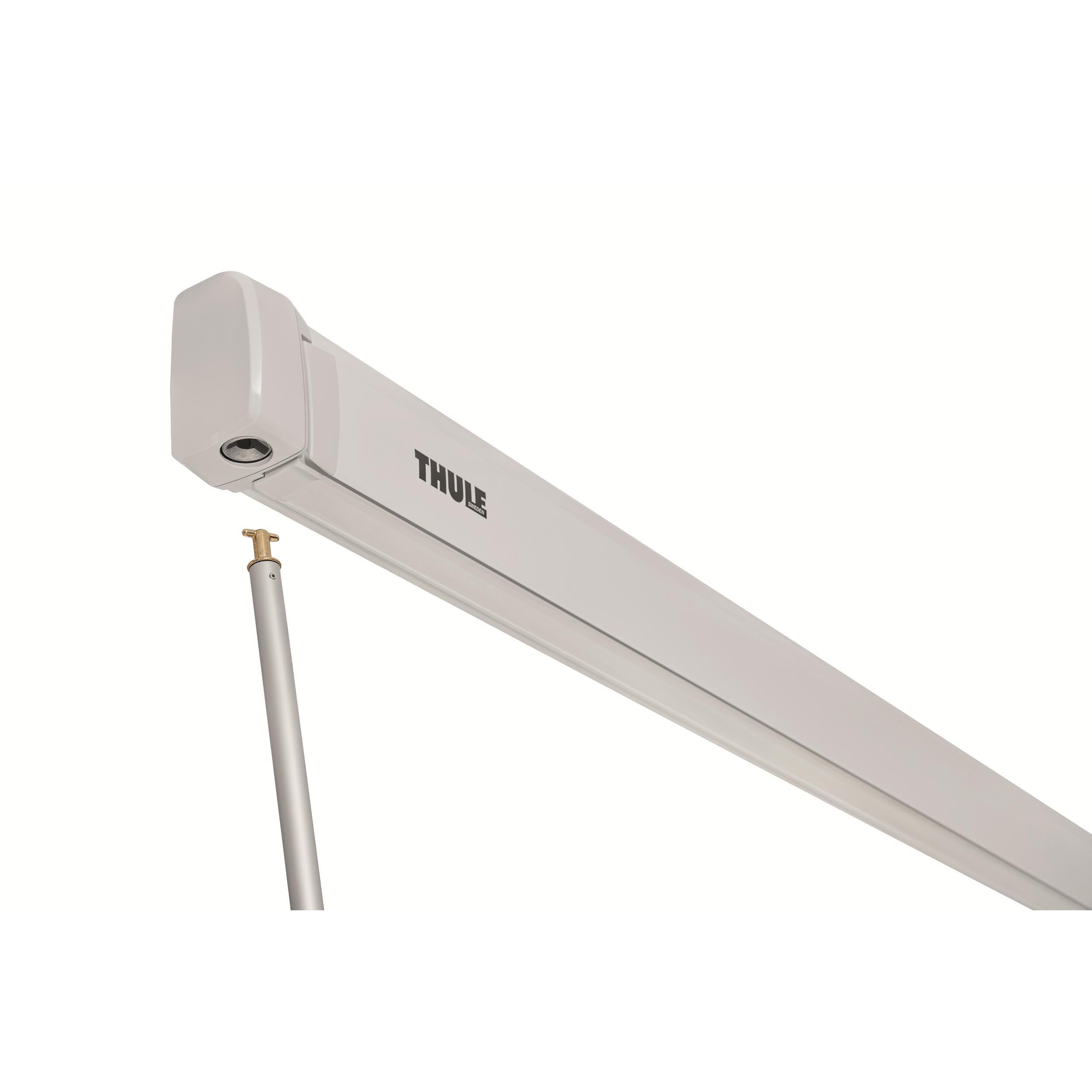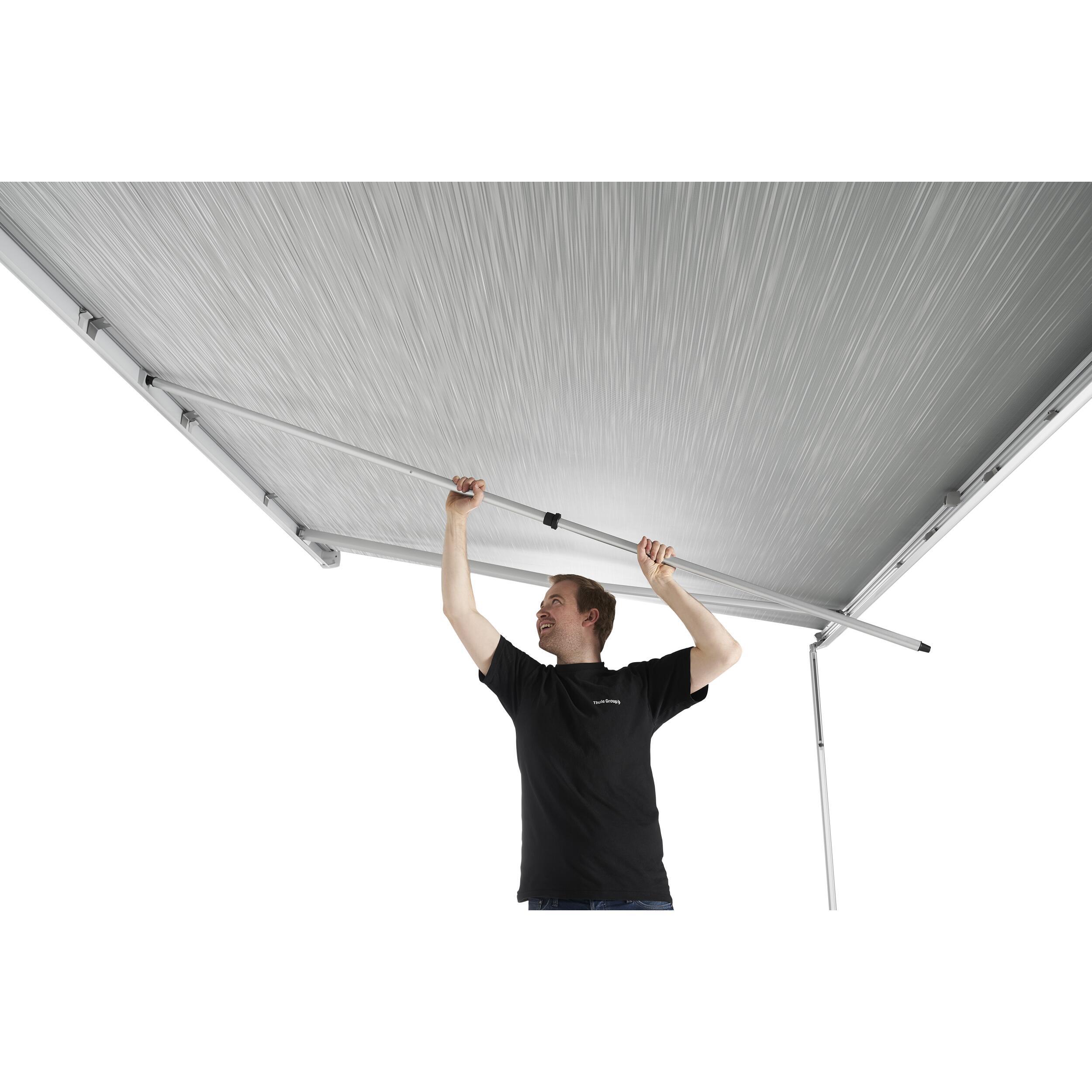 Le store Thule se monte sur la paroi du véhicule. La toile du store est constamment tendue grâce au système de support avec tubes enrouleurs breveté qui améliore la tension de la toile.