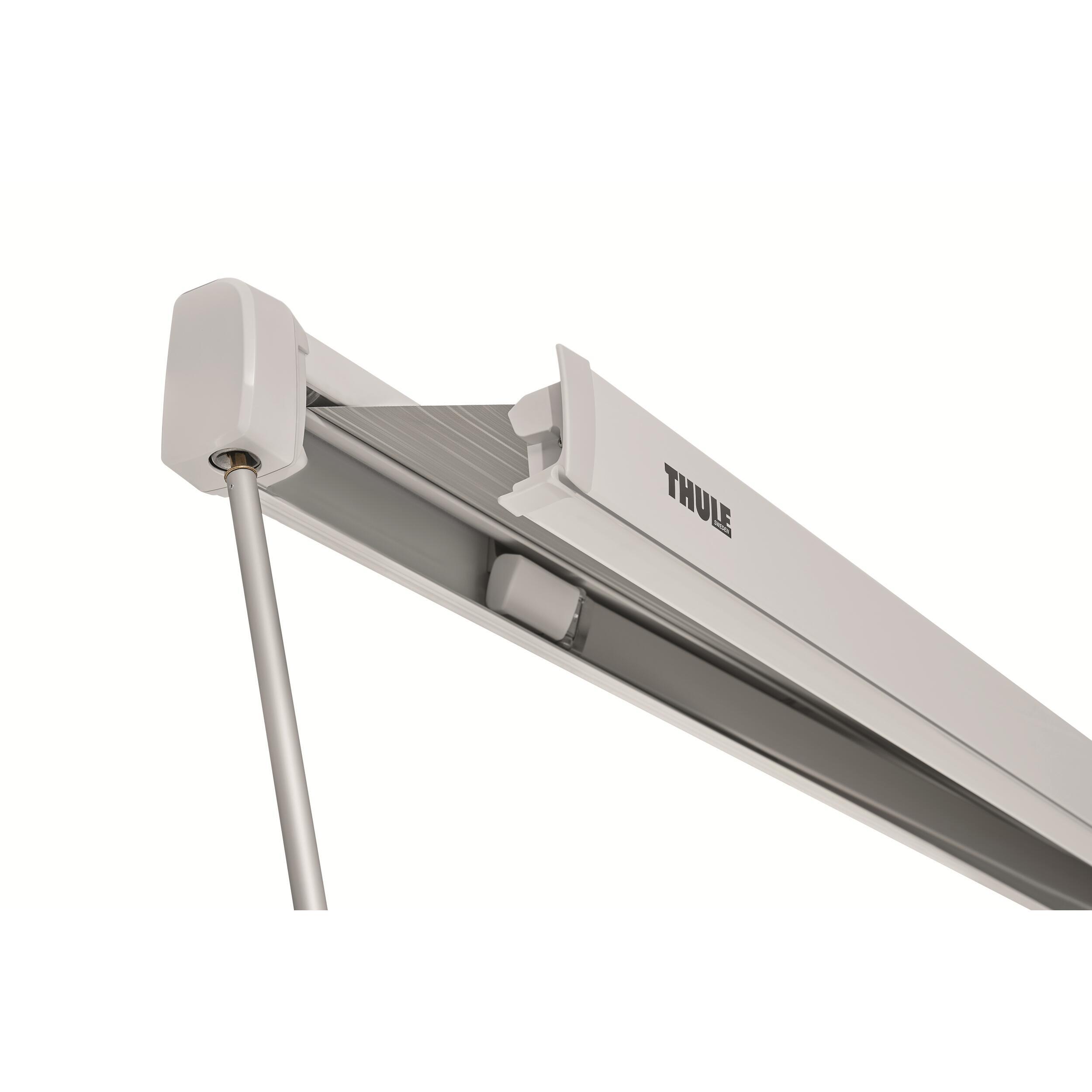 Le store Thule se monte sur la paroi du véhicule. La toile du store est constamment tendue grâce au système de support avec tubes enrouleurs breveté qui améliore la tension de la toile.