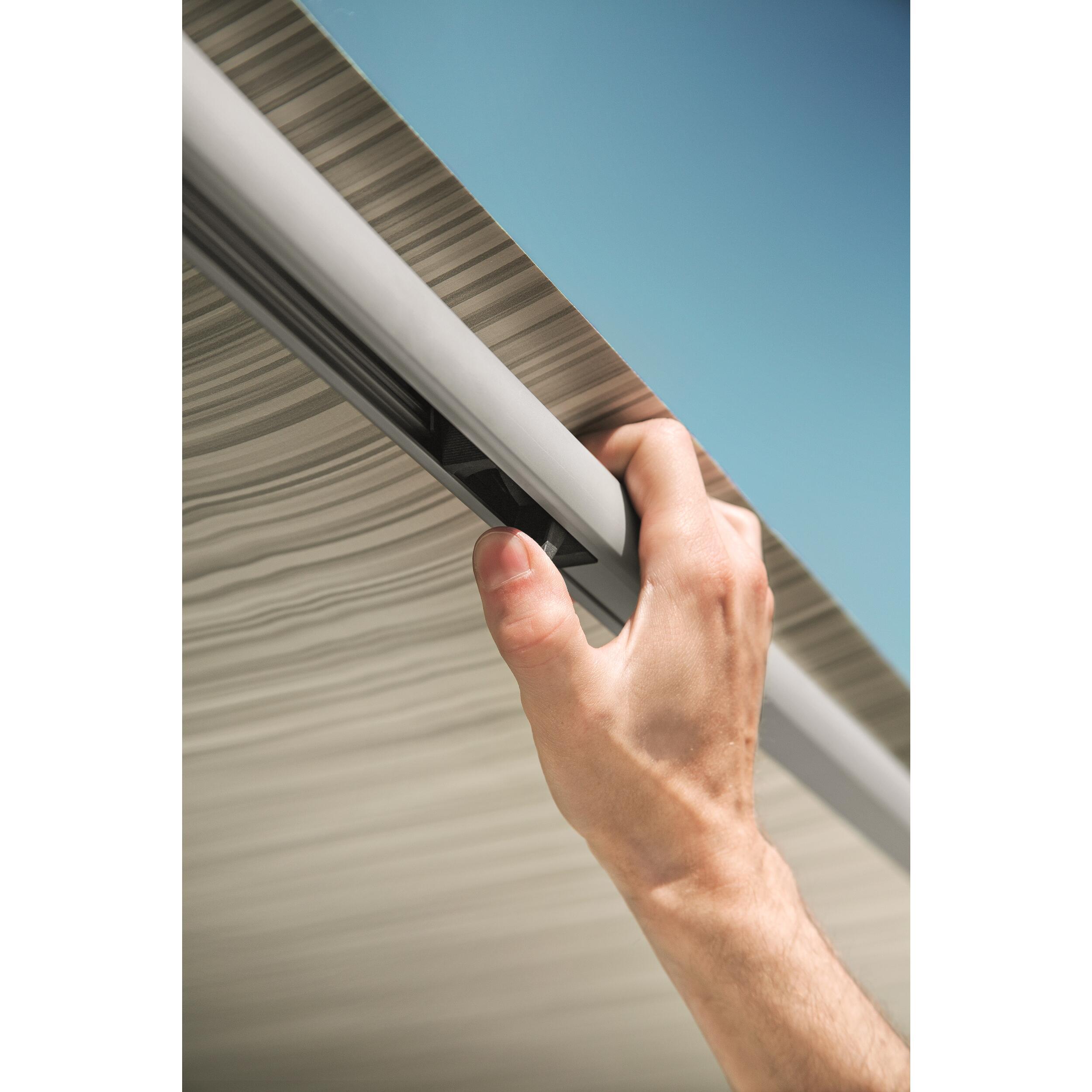 Facile à monter manuellement, le store Thule possède un jonc qui vient se glisser dans le rail de la caravane. Aucune perçage n'est nécessaire. Le store se déroule et se ferme très facilement. Pour simplifier l'installation, le support de bras et les bras s'articulent simultanément. Après utilisation, il vous suffit de le ranger dans sac. Pratique !