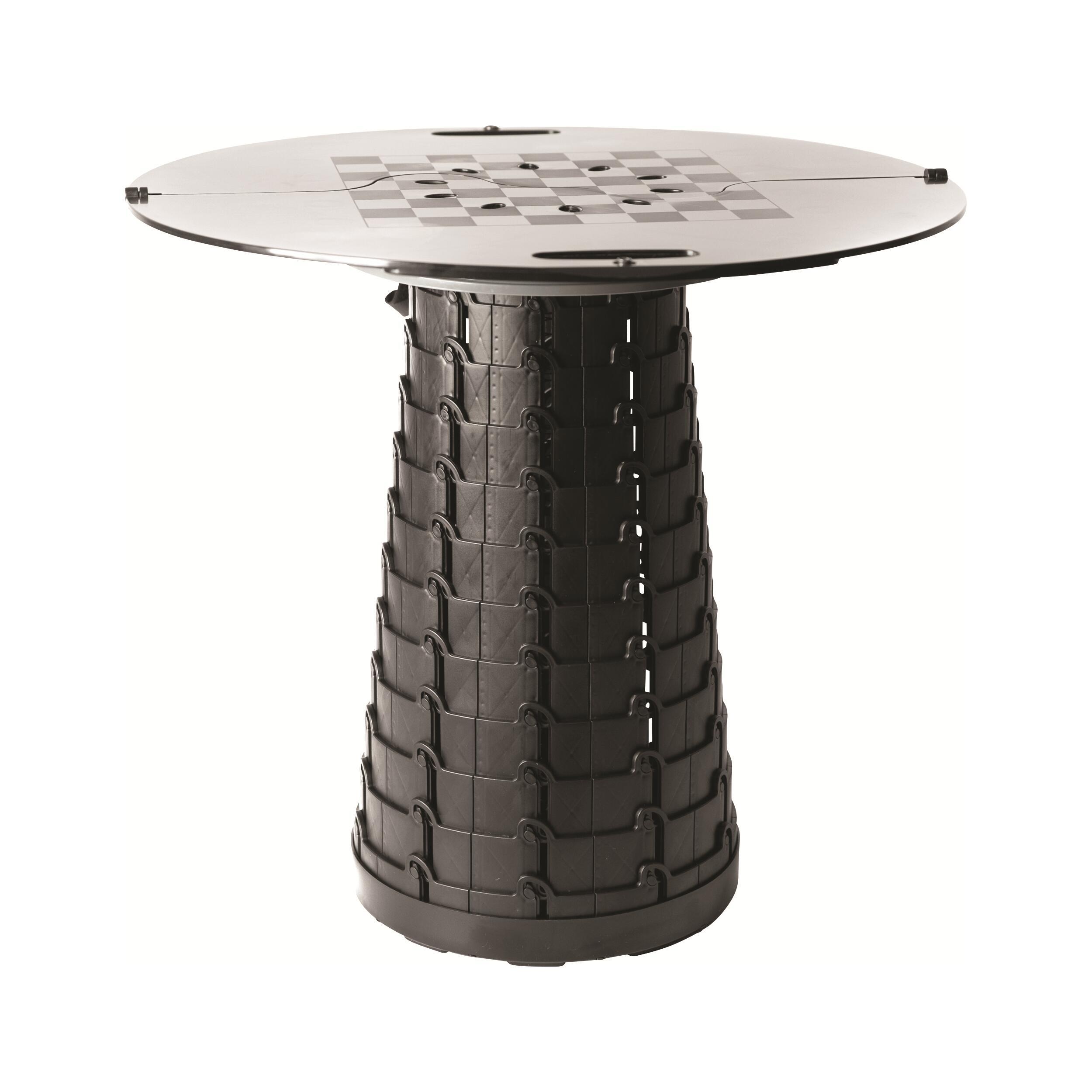 Le tabouret rétractable, pouvant se régler en hauteur, il est alors possible de régler la hauteur de la table de 7 à 45 cm.