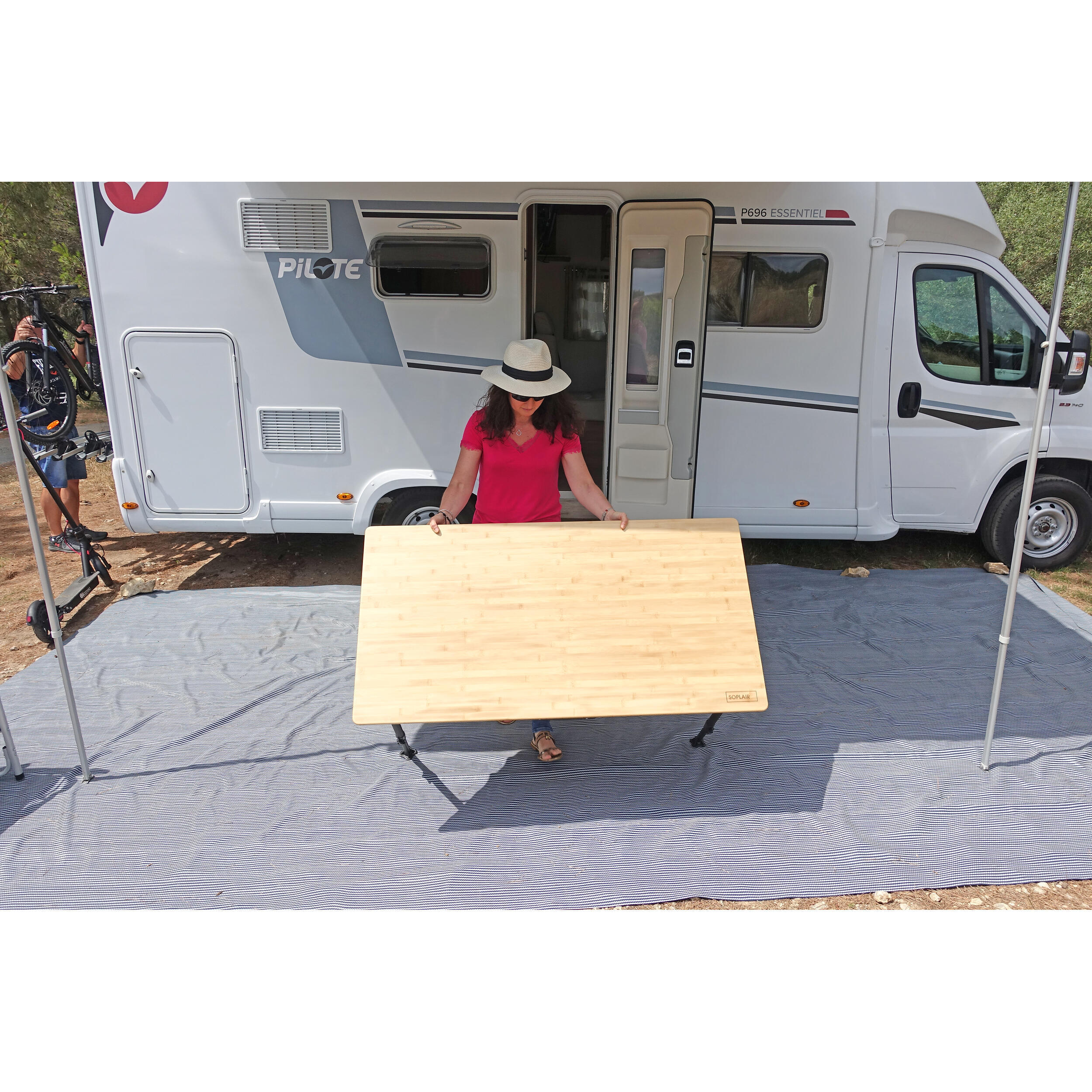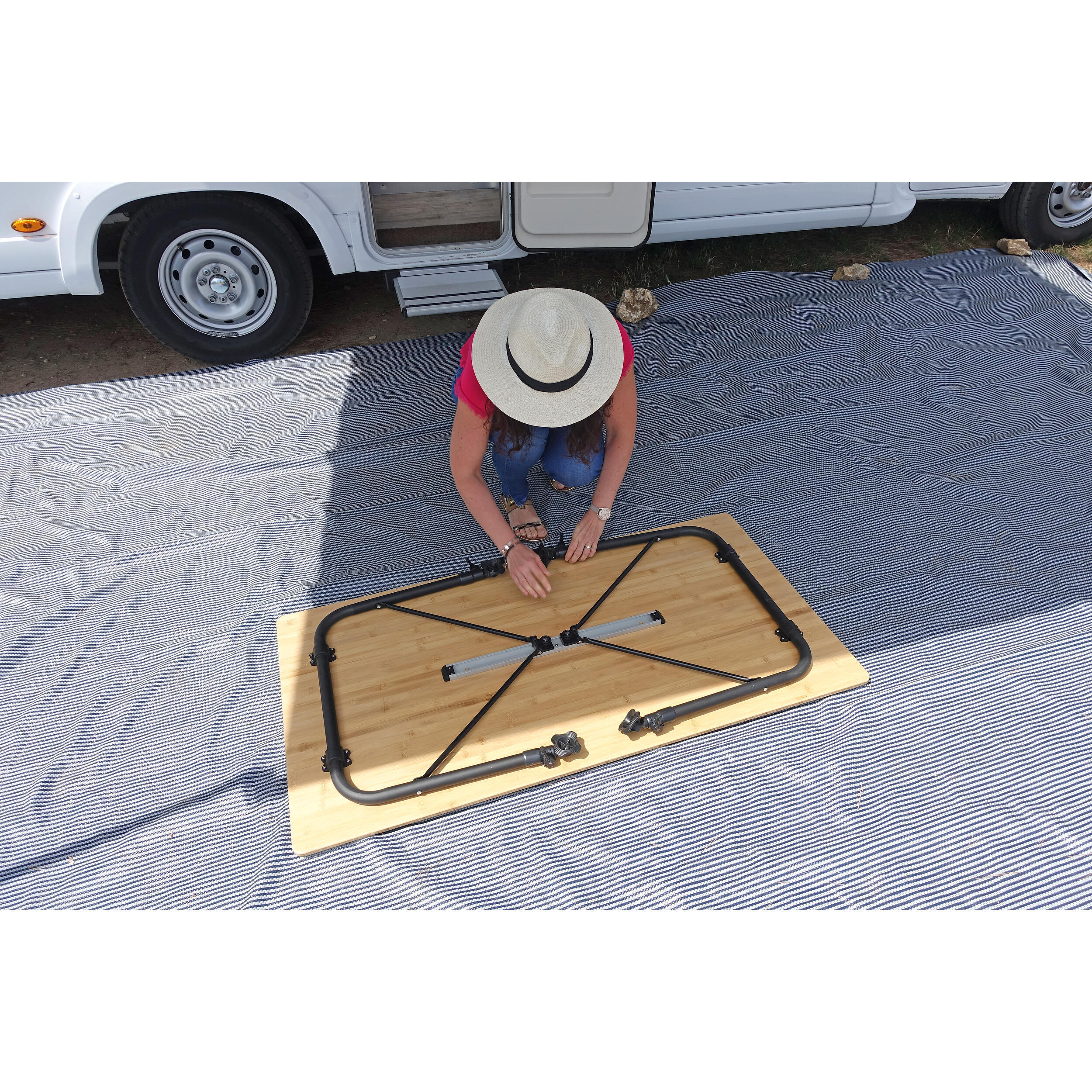 Le plateau en bambou naturel est facile à nettoyer. Quant à la structure en aluminium, elle assure stabilité et légèreté à la table. Vous pouvez poser jusqu’à 30 kg, quel que soit le modèle choisi.