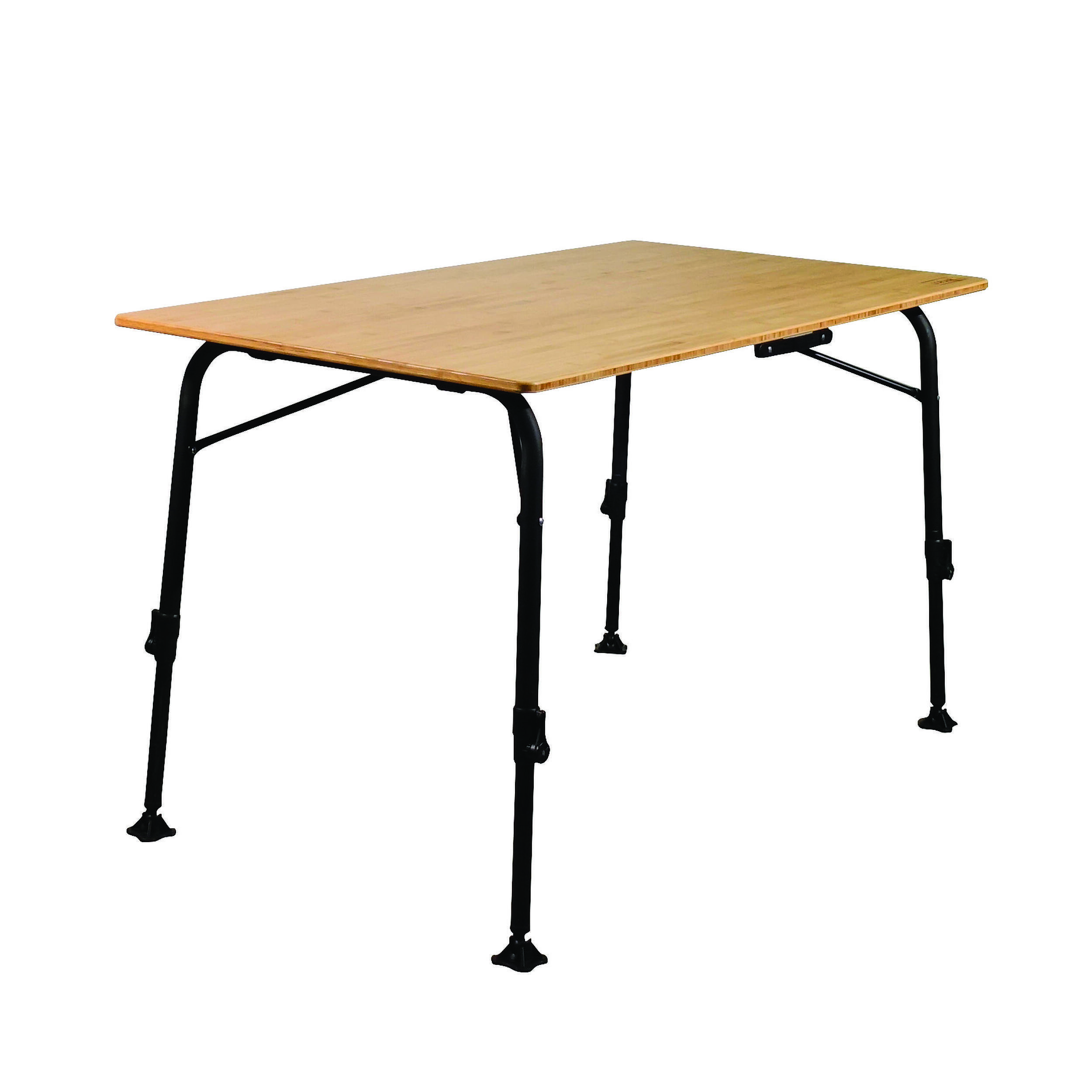 Les pieds de la table de camping sont ajustables en hauteur pour mieux s’adapter à différents types de sol et notamment au dénivelé. Ils sont réglables en hauteur de 52 cm à 71 cm.