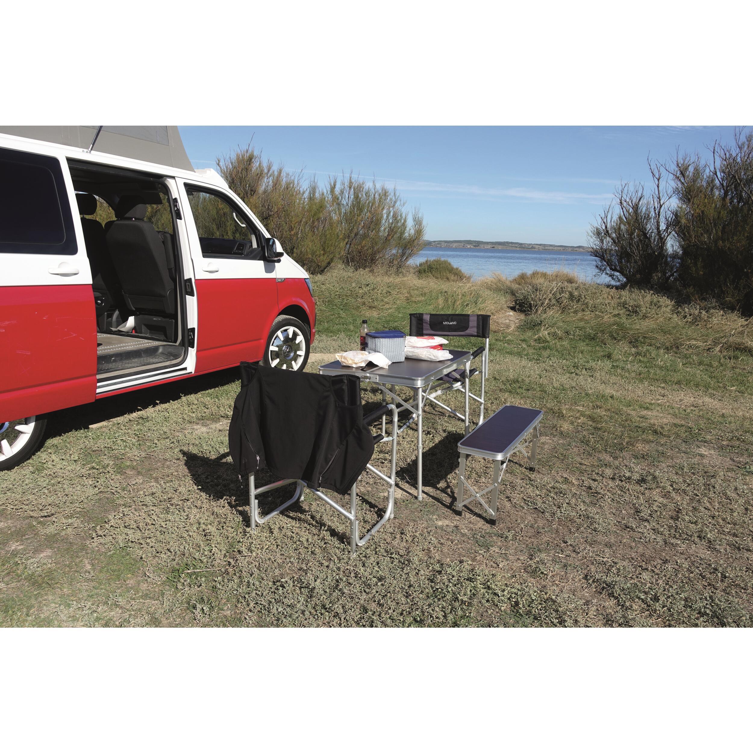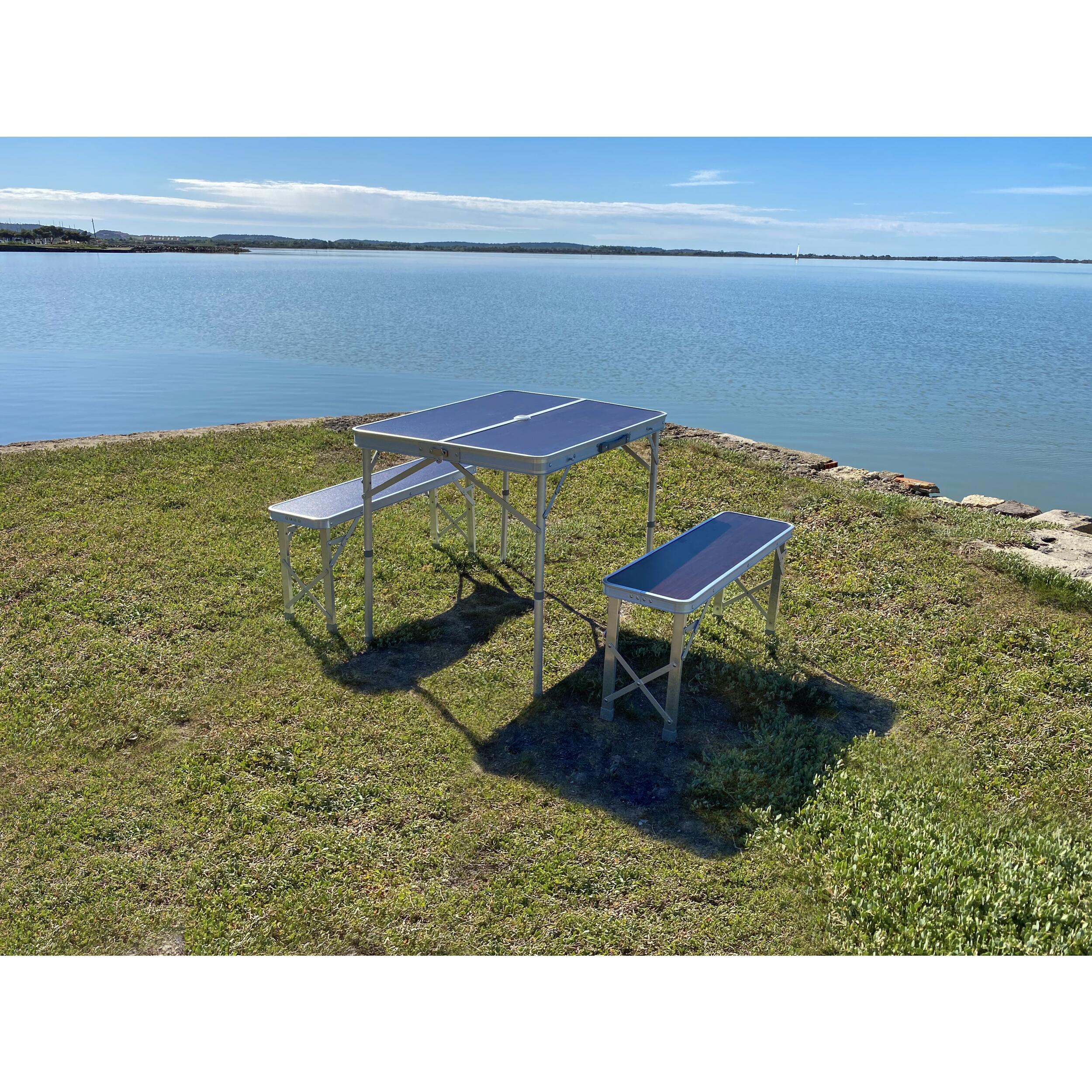 Ensemble table pique-nique MIDLAND pour 4 personnes : pratique, pliable et facile à transporter. Composé d’une table spacieuse et de deux bancs repliables, il offre confort et convivialité en extérieur. Structure en aluminium légère, finition bois élégante et montage rapide.