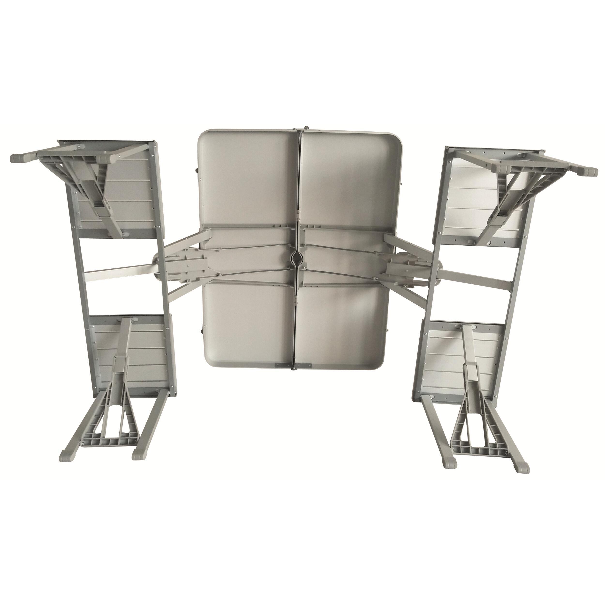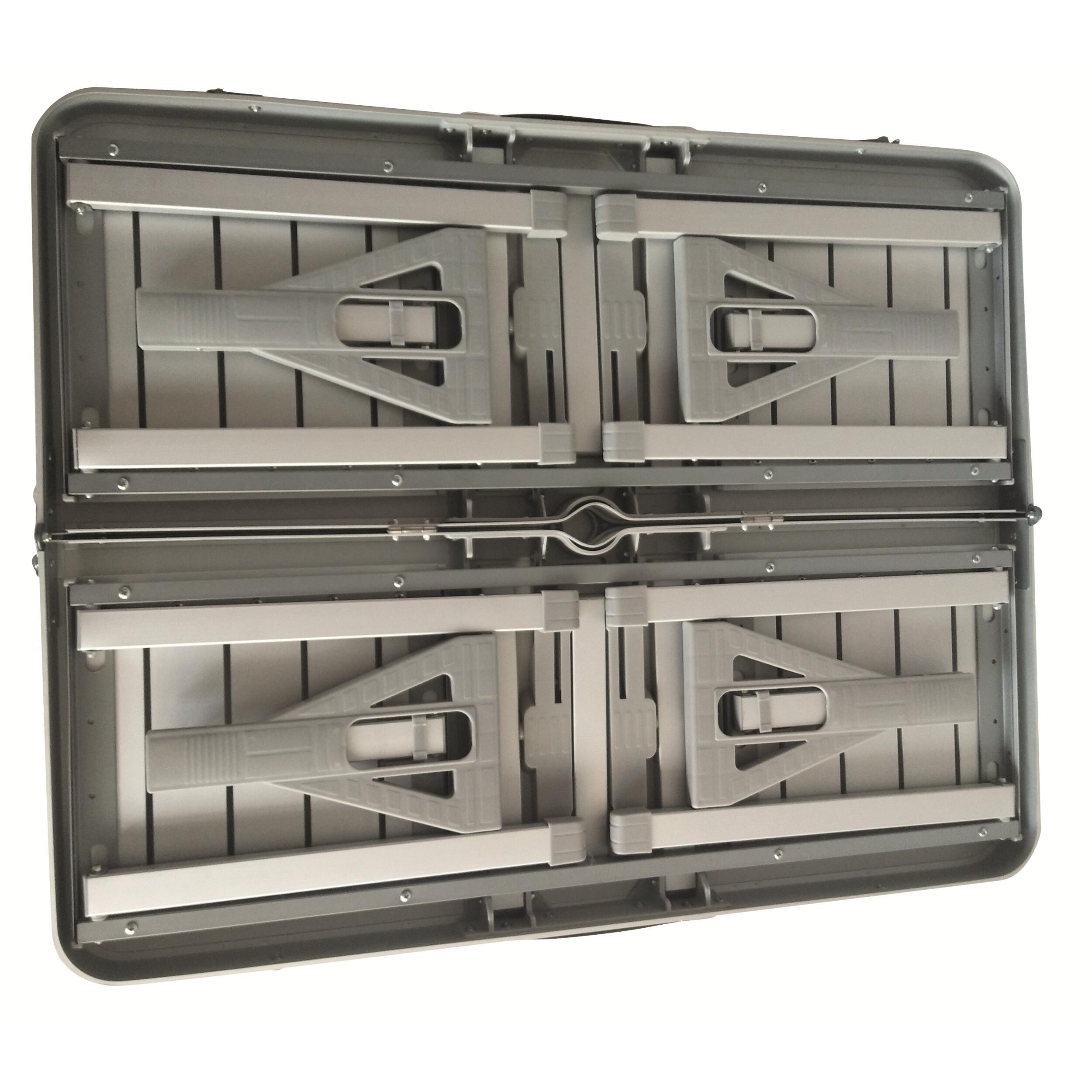 La table valise, porte bien son nom, car elle est facile à transporter. Etant compact, elle se range sans difficulté et se transforme en valise. La table est aussi dotée d’une poignée de transport pour la porter plus simplement.