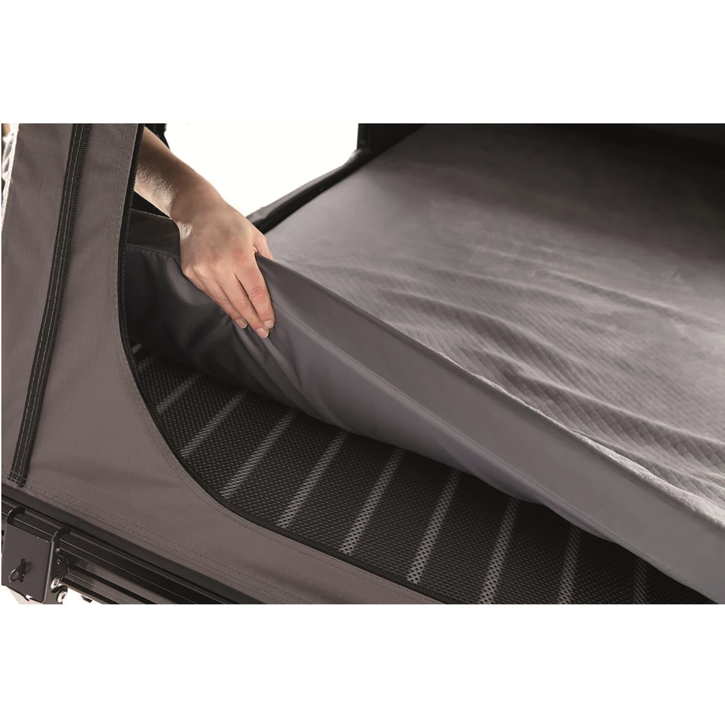 Le système ingénieux équipé de vérins facilite l’ouverture quasi-automatique de la tente de toit. Il vous suffit de tirer la coque vers vous et fermer les deux boucles. De plus, une fois fermée, elle est très compacte. Pratique !