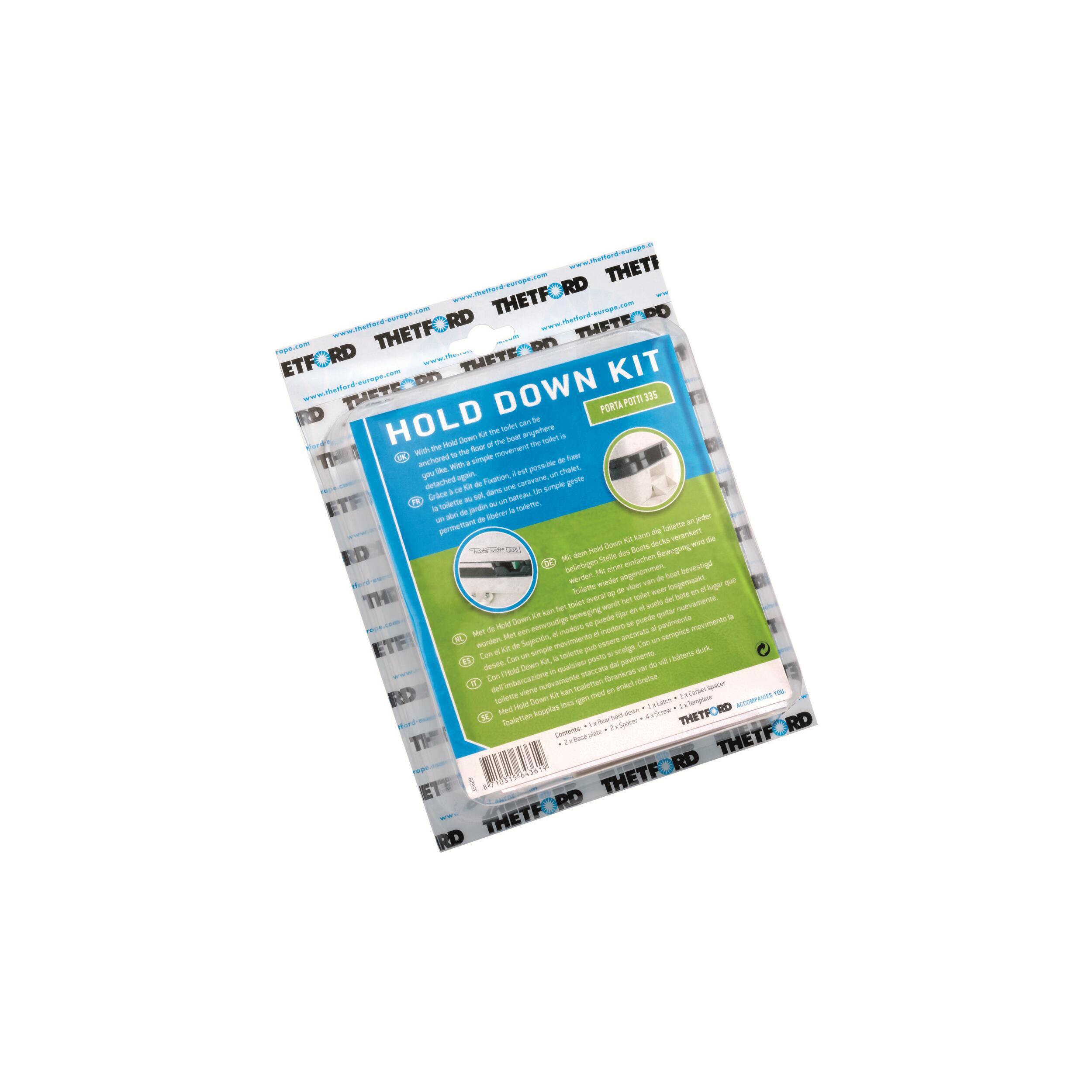Le kit de fixation de la marque Thetford est une solution pour fixer votre toilette portable Porta Potti au sol. Il suffit d'un simple geste pour libérer le toilette.