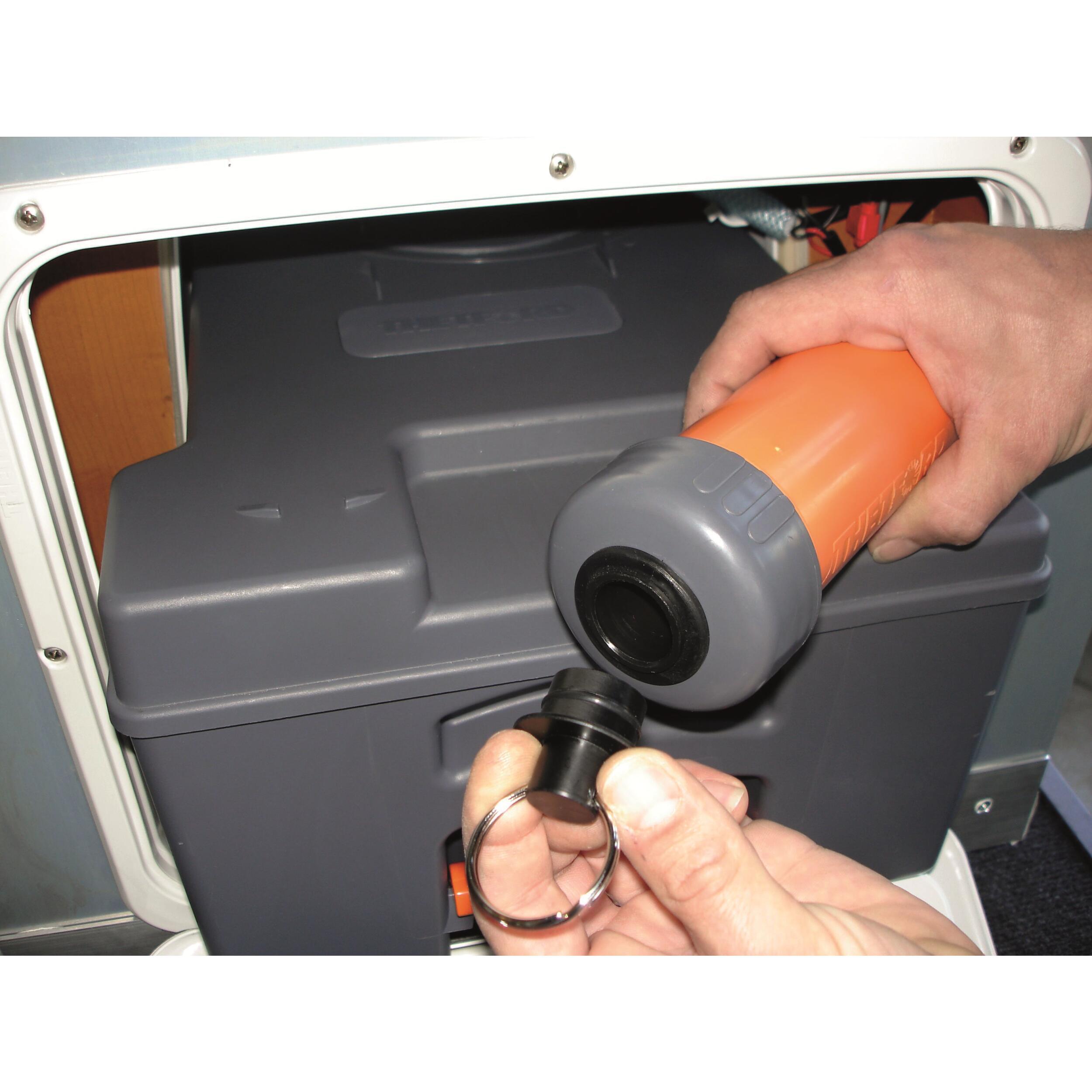 La turbine 12V aspire les gaz qui vont être filtrés grâce à un filtre à charbon actif anti-odeurs puis ensuite rejetés à l'extérieur du véhicule.