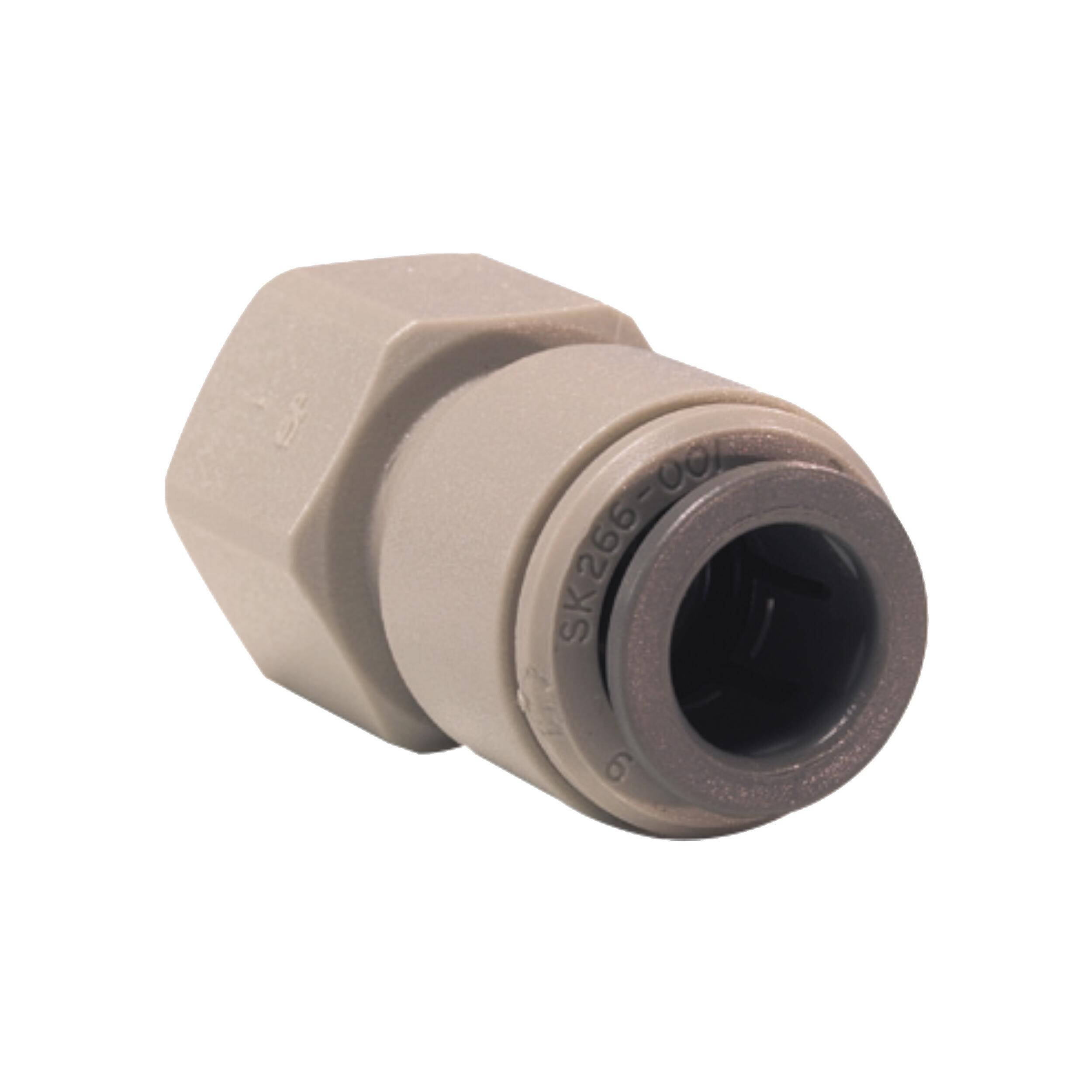 Le raccord push-fit en acétal avec adaptateur femelle BSP de John Guest permet de connecter facilement un tuyau métrique à un filetage BSP. Installation rapide, sans outil ni produit d’étanchéité, avec une fixation fiable et étanche. Sa conception préserve le tuyau et garantit un bon débit. Résistant à la corrosion, démontable, et adapté à l’eau potable, y compris pour une utilisation intermittente en eau chaude (jusqu’à 65 °C), c’est un choix sûr et pratique pour vos installations.