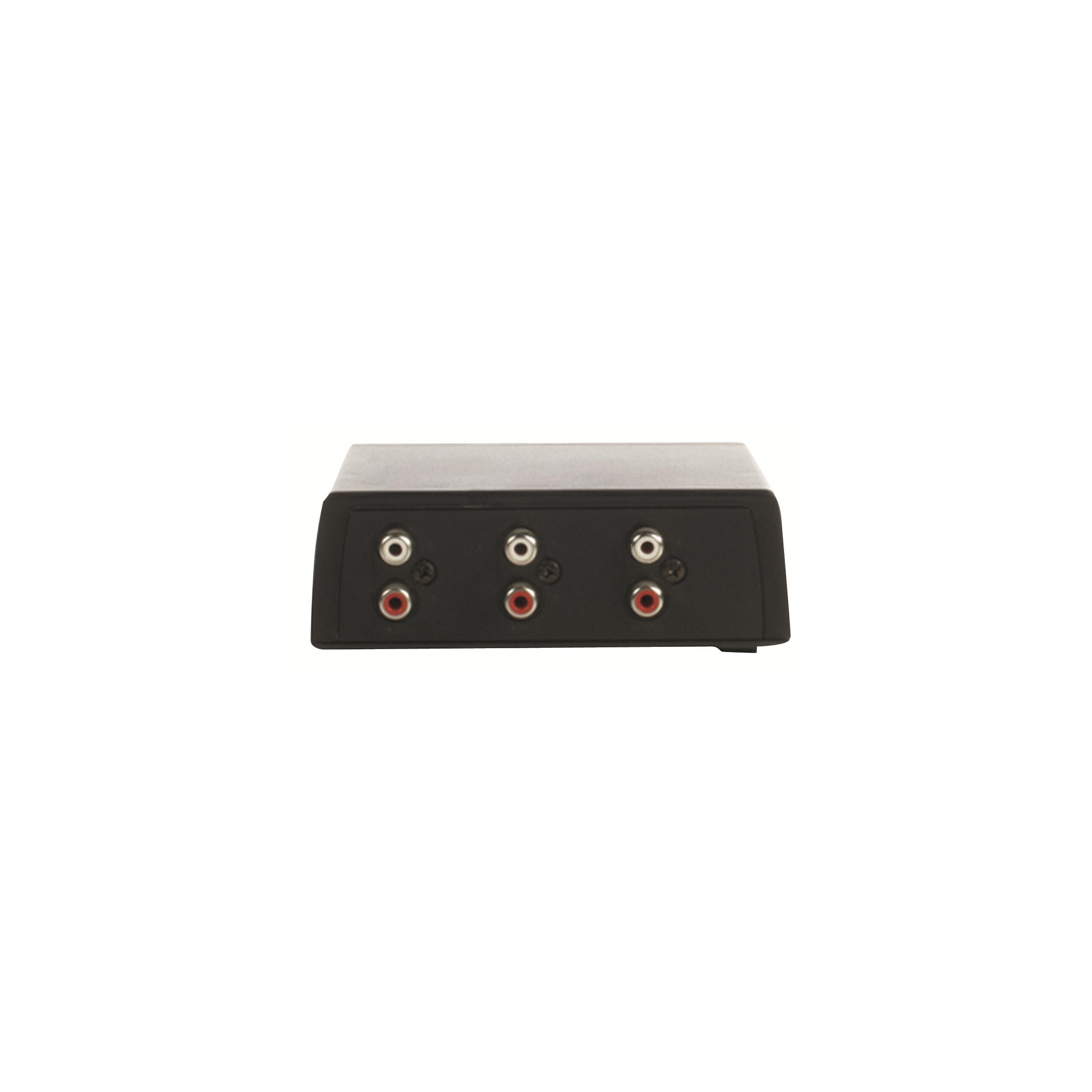 Sélecteur audio Fusion. Le sélecteur ets fourni avec câble RCA et Mini jack, pour le relier à une soure audio (Bluetoth BT 100, Sortie casque TV...) et un récepteur audio (Pack audiolight Fusion ...). Dimensions : 120x60x155mm. Poids 215g