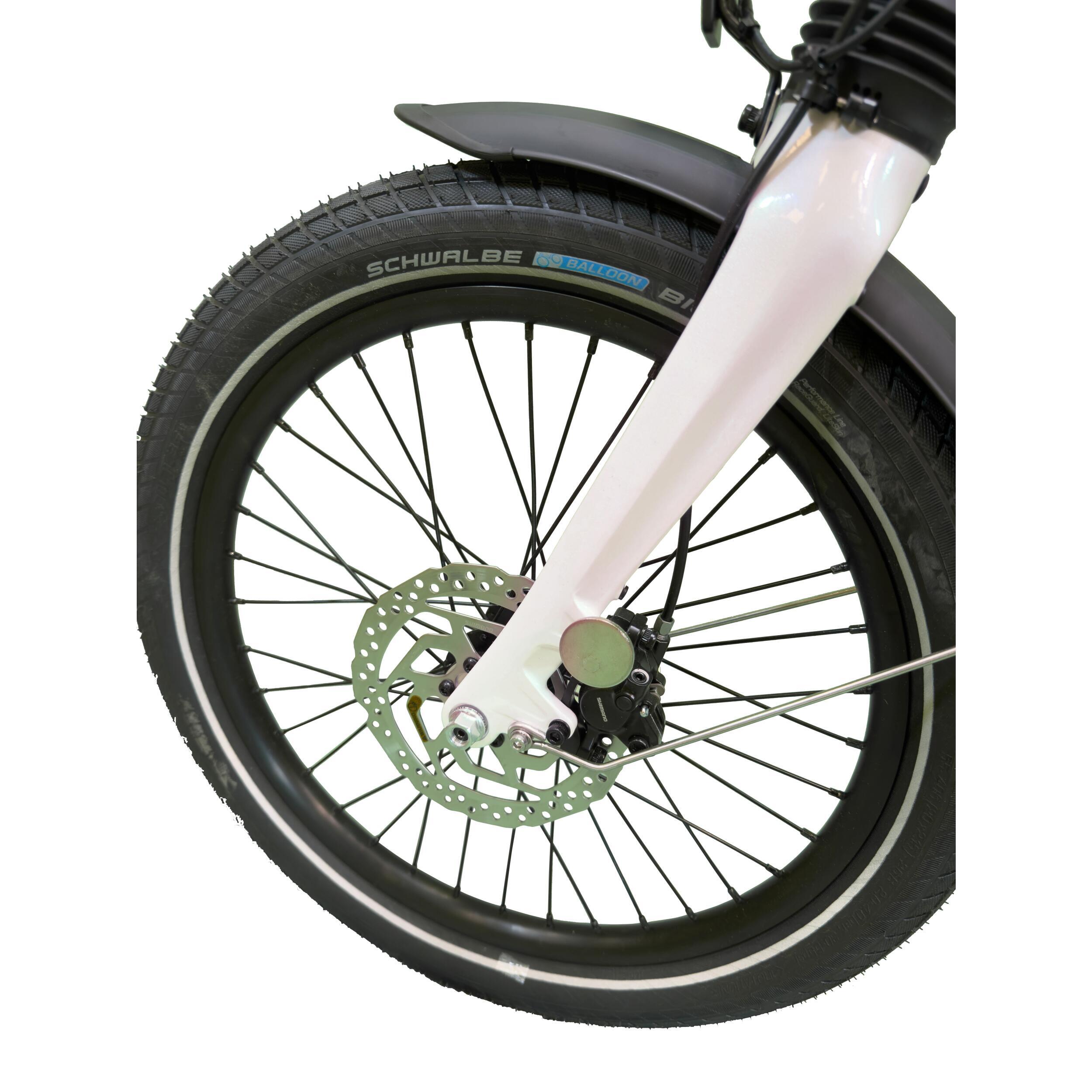 Le vélo électrique pliant JUNY est proposé en trois couleurs et trois capacités différentes de batterie.