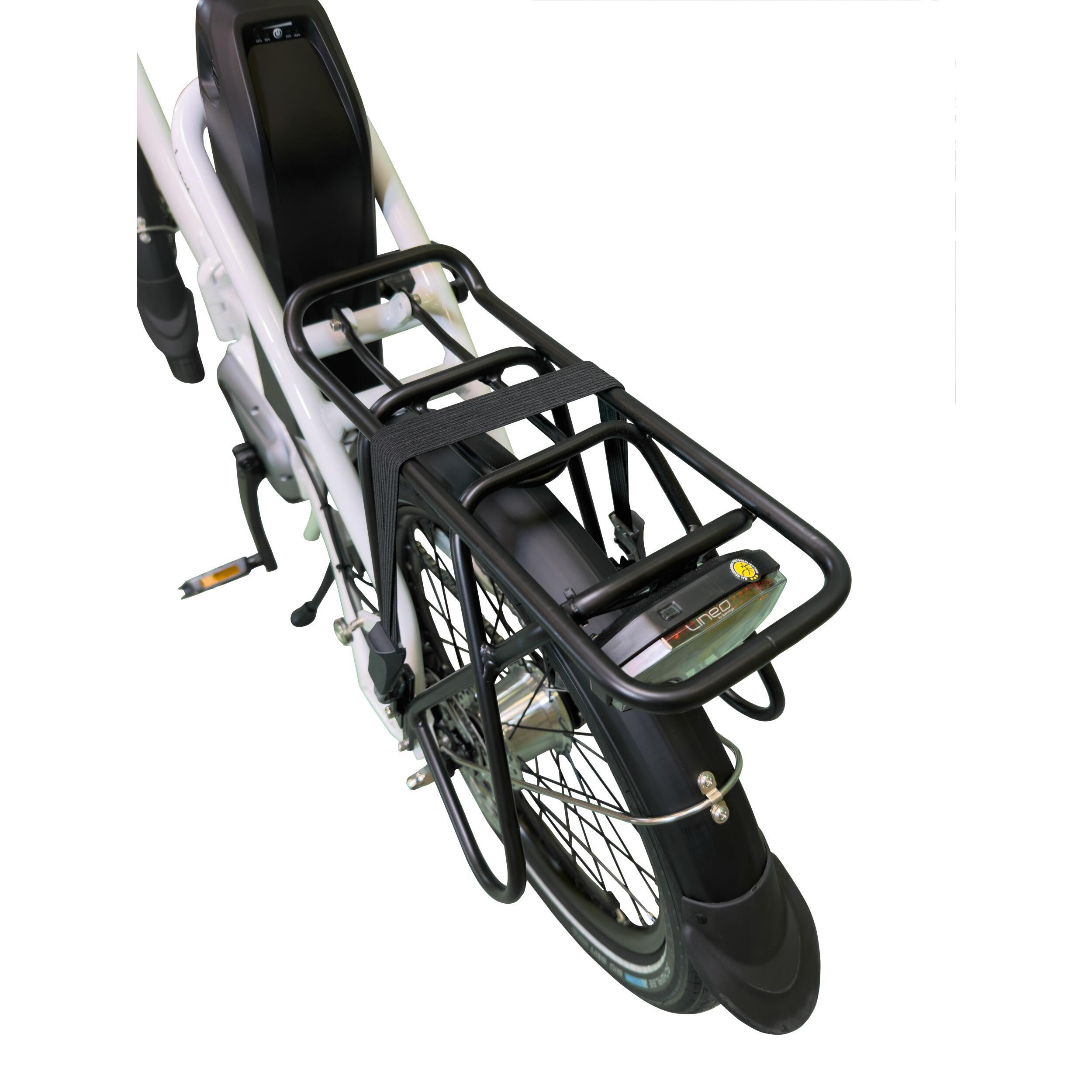 - Faire ses courses à vélo :oui ! C'est possible avec leporte-bagage intégré(25 kg maximum) et qui propose une sangle de maintien parfaite pour caler vos courses. Vous pouvez aussi y mettre vos sacs de sport afin de rejoindre vos différentes activités.