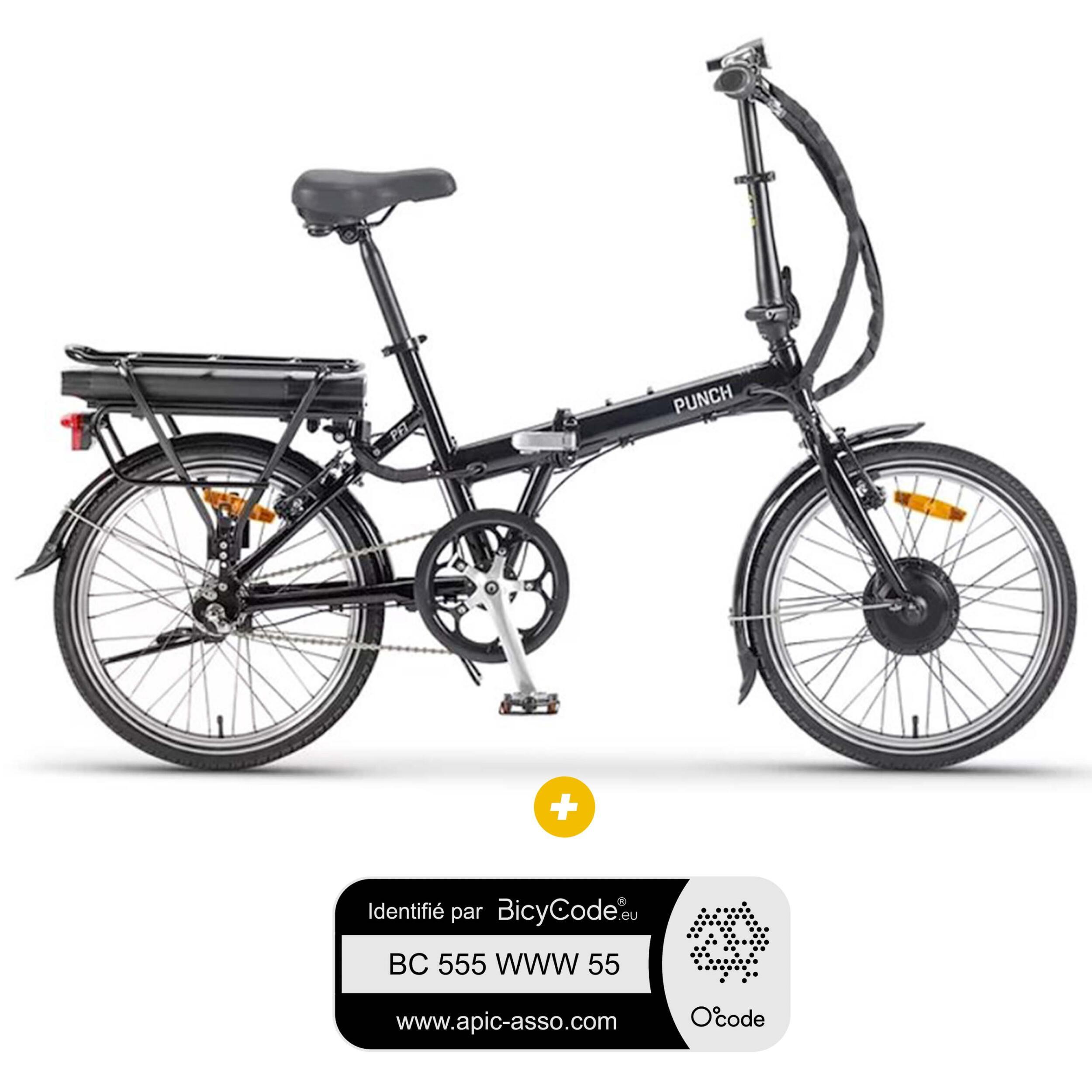 L'étiquette d'identification personnelle française du vélo (Bicycode) est incluse pour les vélos électriques commandés en France, conformément à la loi française en vigueur.