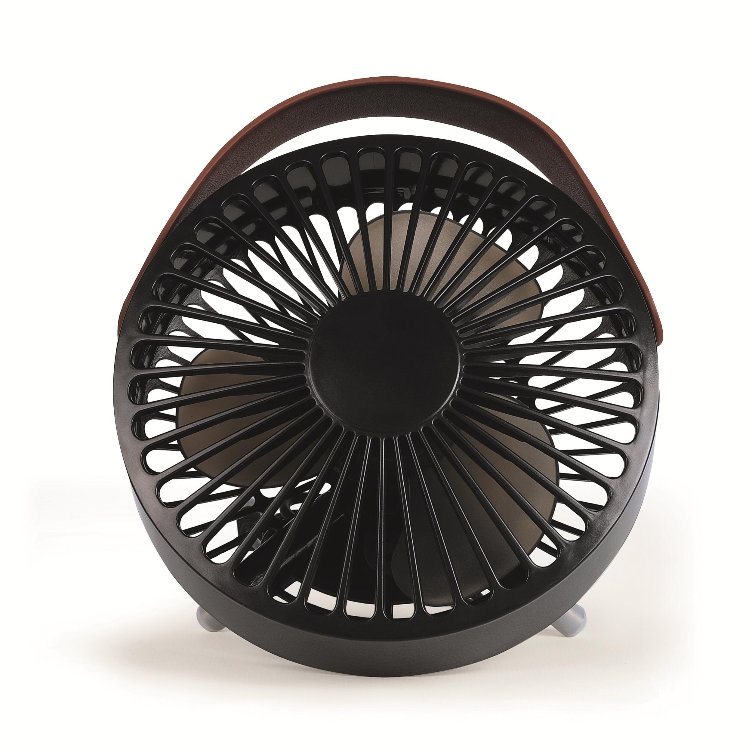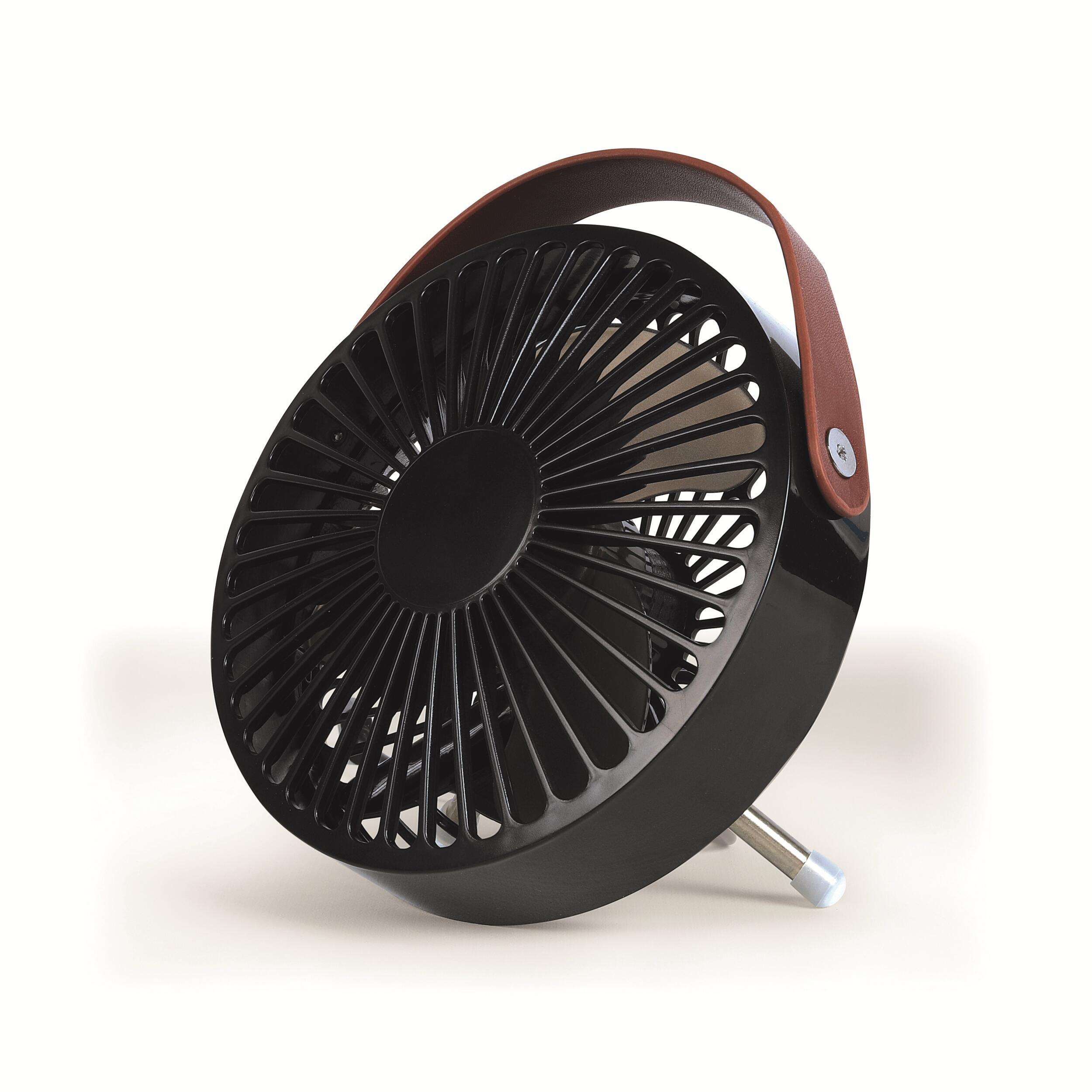 Le ventilateur peut se suspendre grâce à sa poignée ou se poser sur ses pieds escamotables.