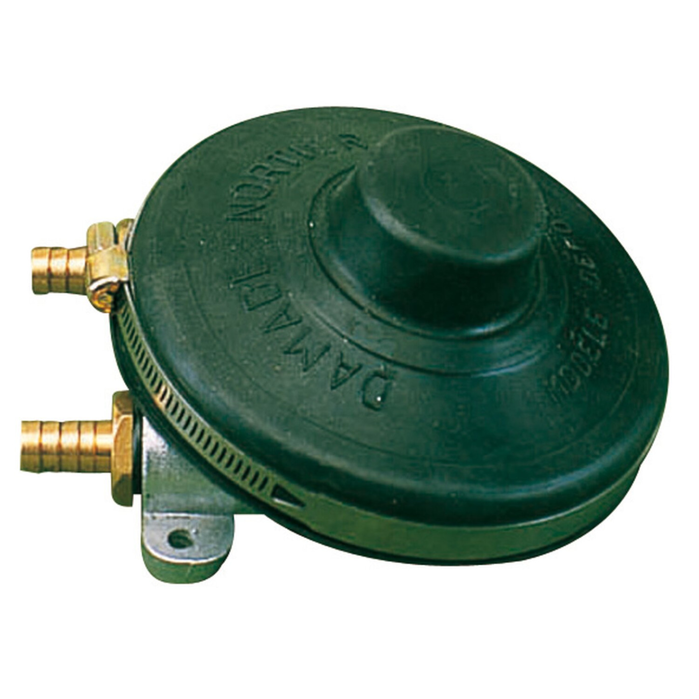 Débit : 5 à 6 litres / minute. Embouts cannelés pour tuyau 10 mm. Fixation par vis (non fournies). Dim. (H x Diam.) : 68 x 113 mm.