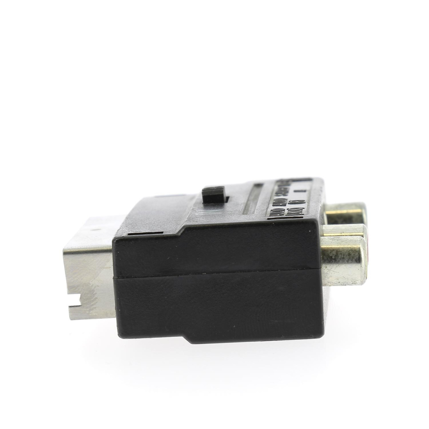 Adaptateur PERITEL / RCA 4-DIN.Adaptateur noir avec entrées RCA et 4-DIN vers sortie PERITEL. Compatible avec produit disposant d'une sortie RCA ou 4-DIN.